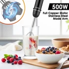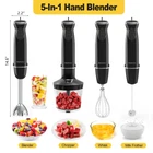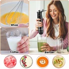 Quiet and Powerful:This 500W copper motor handheld blender is ETL certified, This stick blender immersion ensuring safe and efficient blending and chopping performance. The durable stainless steel body and blades provide an exceptional user experience. Lightweight Design: The non-slip handle electric hand blender is carefully designed to be ergonomic, providing a comfortable grip experience. The high-quality ABS body effectively reduces vibration and noise, ensuring durability while remaining lightweight, making extended use more effortless and convenient. Versatile Blender:Equipped with 12 speed settings and detachable multifunctional attachments,this blender set meets a variety of needs.Whether you're making milkshakes,soups,hummus,cakes,smoothies,baby food or handling various kitchen tasks,it delivers excellent performance Stainless Steel & BPA-Free Attachments:The attachments are made of stainless steel and BPA-free ABS,ensuring safety and health while delivering efficient blending performance.The smooth material is easy to clean and will not discolor or rust with long-term use. Package Includes: Corded Hand Blender x 1,User Manual x 1,Dishwasher-Safe Attachment:Blender Arm x 1,Egg Whisk x 1,Milk Frother x 1,22oz Measuring Cup x 1,16oz Food Chopper Bowl x 1