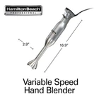 The Variable Speed Hand Blender provides versatile blending, pureeing, mixing and whipping. The comfortable -hand variable speed control with LED screen has instant speed feedback to maximize control and precision. VERSATILE BLENDING. There's no need to take out your big blender or hand mixer to take care of small blending tasks. This compact, versatile immersion blender can handle every blending, pureeing, mixing and whipping job with ease. BLEND RIGHT IN YOUR PAN, BOWL OR JAR: Save time and skip washing extra dishes — you can blend, puree, mix, or whisk right in your pan, bowl or jar. POWERFUL BLENDING. Puree soups, blend smoothies, mix dressings or whip cream — the 300 watt peak-power motor lets you do it all. It has the power to quickly turn fresh ingredients into homemade dressings, mayonnaise, batters and so much more. -HAND VARIABLE SPEED CONTROL. Enjoy the comfort of -hand speed control and a nonslip rubber grip. From starting on the lowest speed to minimize splatter to whipping on high, this hand blender has a wide range of speeds to handle every blending task. INSTANT SPEED FEEDBACK. As you blend, the LED screen provides instant feedback. You'll love the highly visible, illuminated indication of your speed level because it maximizes your blending control and precision.