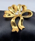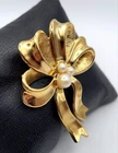 Imperial Victorian Bow Brooch Signed Avon Faux Pearl Gold Tone Vintage Pin. Measures approx. 2x1.5 inches.