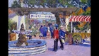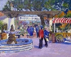 This oil painting captures a vibrant scene in Old Town, San Diego, bringing to life the lively atmosphere of a bustling market day. The composition features a gathering of people around a historic fountain, with intricate details of rustic architecture and bright colors that evoke the charm of this beloved area. The artist’s impressionist technique shines through in the loose, expressive brushstrokes that bring movement to the scene. Shades of lavender, azure, and golden hues meld together, creating a warm, inviting palette that reflects the bright California sunlight filtering through the trees. This artwork not only captures a moment in time but also pays homage to the cultural and historical richness of Old Town. With iconic elements like the red-striped market cart and intricate fountain, this painting serves as a visual narrative of San Diego’s heritage, making it a perfect centerpiece for anyone who values local history and art. Each brushstroke demonstrates the artist’s skill in capturing fleeting moments, with textures that add depth and dimension to the scene, making viewers feel as though they’re standing amidst the crowd, basking in the lively atmosphere. For potential buyers, this painting is an investment in a timeless piece of San Diego’s history. Its impressionistic style is both classic and modern, allowing it to blend seamlessly into various interior decor styles. As a unique work of art that reflects the essence of Old Town, this piece is not only a decorative element but also a conversation starter and a source of inspiration.
