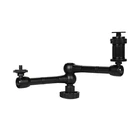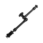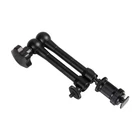 Inch Metal Articulating Arm Super Clamp Holder Stand DSLR Camera Photo Studio Photography Accessories Prop Kit Description: STURDY AND DURABLE-It is well-machined metal which is made of hard anodized- aluminum alloy, it won't be easy to suffer corrosion or breakage. ARM- side has 1/4" screw connecting to Monitor, LED light or other accessories. Another side is hot shoe square mount that can be easily mounted onto your DSLR Camera. And this hot shoe mount is removable to become another 1/4" screw, so both end are 1/4" screw that you can connect to different equipments. EASY TO CONTROL-This arm with a locking control knobs to release or enlarge the tension which can give all position movement.This articulating arm with Two 360° smooth ball heads simplifies the mounting, placement and adjusting any on-camera lightings and other accessories. WIDELY USE- Arm Articulating Friction Arm with Hot Shoe Mounts is ideal for DSLR Camera Rig, LCD Monitor, DV Monitor, LED Lights, Flash Lights, Microphones, Smartphone and More. SUPER CLAMP- The arm clamp has a female 1/4-20 and a 3/8-16, both the standard fitting sizes in the photo industry for heads and tripods can be used for a variety of attachments. like cameras,15mm rods, led lights, umbrellas, hooks, shelves, plate glass, cross bars, etc. EASY TO CONTROL- This precise and durable designed super clamp with locking control knobs to release or enlarge the tension which can give all position movement,A great chuck to easily and quickly catch the object. Specifications: Color: Black Material: Metal Clamp Range: approx. 55mm/2.16inch Arm Length: approx. 285mm/11.22inch Package Included: 1* 11" Arm