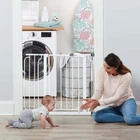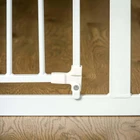 Your baby has started to walk, it’s time to child proof your house. The Regalo Easy Step Metal Baby Gate hits all the criteria with an all-steel construction, installs quickly by either pressure mount or wall mount and is adjustable to accommodate door openings between 29-34 inches or 35-38.5 inches wide. Space between the bars are 2.5 inches. The gate door is 16 inches wide. Please Read The gate will appear bent before installation There will be a gap at the handle before installation Both of these concerns will be eliminated once the gate is properly installed in your doorway Please measure your opening prior to purchase to ensure proper fit Gate frame design to be assembled at all times Regalo Easy Step Baby Gate Features Fits openings between 29-34 and 35-38.5 inches wide and stands 30 inches tall. Easy to use lever handle features a one-touch release safety lock. Convenient walk through design Easy pressure mount set up Made for children 6-24 months. Can be used for medium to large dogs & infants. What’s included in the Box One Regalo Easy Step Baby Gate Instruction Manual One 6-inch extension kit. Four pressure mounted spindle rods. Four wall cups with screws. On Mar 18, 2024 at 18:47:40 PDT, seller added the following information: