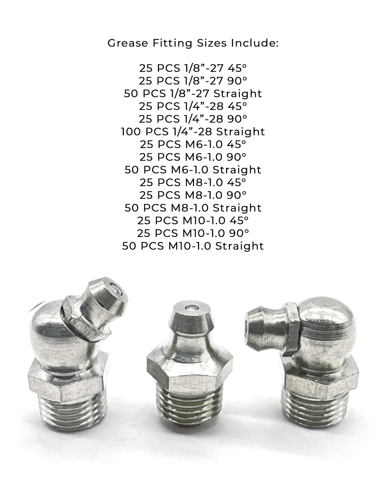 Assortment #532 550 Pieces! Inch & Metric Zerks Grease Fittings Protective Zinc Clear Finish! Products Individually labeled and poly bagged. Looking for additional items or different quantities? Click the button below to visit our full eBay store. Questions? Reach us by eBay Messaging... We'll be glad to help! Payment Policy Only PayPal is accepted for payment. Immediate Payment required after purchase. If you ordered an item by mistake, please let us know as soon as possible so we can cancel it prior to shipment. An Unpaid Item Case will be opened if payment has not been received within 7 days of the purchase date. Shipping Policy Shipping within the 50 United States only. We do not ship Internationally. Most orders ship via USPS Priority Mail. Some orders may ship via UPS Ground due to size and weight restrictions. All shipping methods are at our discretion. Tracking information will be made available after your products have shipped. Although most orders ship within 1 business day, please allow up to 3 business days for shipping. Business days do not include weekends or holidays. Expedited / Next day shipping is available upon request. Buyer will be responsible for additional costs. Returns Policy You may return any item for any reason within 14 days to receive a full refund. Please contact us before returning your product. Your refund will not be applied without prior notification. Buyer is responsible for return freight. FEEDBACK FEEDBACK IS VERY IMPORTANT TO US! If you are satisfied with your purchase, please leave us a 5-Star feedback rating. If you are NOT satisfied with our products or services, please contact us before leaving feedback. We will do our best to make it right. About Us Our fasteners are quality inspected and manufactured to all applicable standards and specifications. These are not second quality fasteners that were previously rejected or rescued from a scrap yard. If you have any questions, please feel free to contact us. We can help! CLICK HERE to visit the Assortments section of our eBay Store