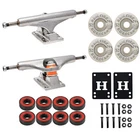 Product Description Independent Skateboard Trucks, Spitfire Wheels, Abec 5 Bearings Upgrade Package PACKAGE INCLUDES: Hand selected, top rated brand name components to make a premium skateboared complete. Independent Mid Trucks, Spitfire 99A Burners wheels, Amp Abec 5 Bearings, 1" Hardware, and Risers. TRUCKS: New Independent Mid trucks feature a lower profile hanger for optimal contact point angle on your nose and tail for flip tricks, ledges, and all-around street skating. The best lightweight aluminum alloy heat treated to T6 condition for strength, durability, and grind feel. WHEELS: The newly developed burners offer a new tier in Spitfires line. Using a unique new urethane, the burners provide an option for any skater looking for a high-quality wheel that’s great to ride and doesn’t sacrifice performance for the price. Poured in the Bighead shape, 99A durometer hardness. THE REST: This kit includes Amp Abec 5 Bearings, Bearing Spacers, 1" Hardware, and 1/8" Riser Pads (everything you need to make a complete skateboard except the deck/griptape). SIZING: Choose from any truck and wheel size. The hardware measures 1" which can be used to mount the trucks to any standard skateboard deck with or without risers. 17 years being eBay's premier skateboard retailer with 350,000 positive feedback! With over 20,000 items in stock, we are experts on all aspects of skateboarding, longboarding, customer services, shipping speed and bang for your buck. Copyright ©2018 TGM Skateboards | All Rights Reserved