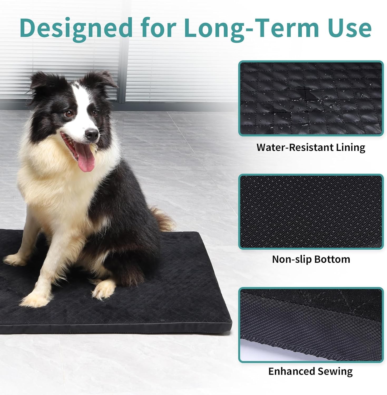 Indestructible Dog Beds, Chew Proof 35"L x 23"W x 2"Th, Black Product Details Item Weight: 3.63 pounds Manufacturer: Aulase Country of Origin: China Item model number: GDB02 Item Package Dimensions L x W x H: 18.19 x 12.01 x 4.61 inches Item Dimensions LxWxH: 35 x 23 x 2 inches Brand Name: Aulase Target Audience Keyword: Dogs Directions: For Dog Model Name: Chewproof Dog Bed Color: Black Size: 35"L x 23"W x 2"Th Material: 1680D Oxford, Velvet, High Density Foam Care Instructions: Machine Wash Breed Recommendation: All Breed Sizes Included Components: Dog Bed Specific Uses for Product: Outdoor, Indoor Product Dimensions : 35 x 23 x 2 inches; 3.64 Pounds Item model number : GDB02 Manufacturer : Aulase Country of Origin : China Brand: Aulase Special Feature: Chew Resistant, Washable Cover, Water Resistant Product Dimensions: 35"L x 23"W x 2"Th [Ruggedly Tested - Indestructible Dog Bed] Is your furry friend a relentless digger and chewer? You may need this chew-proof dog bed. It undergoes rigorous testing to prevent all types of dog damage, ensuring unparalleled reliability. This dog mat is made from upgraded bite-resistant fabric, tough and indestructible, able to withstand even the most determined chewers. No more worrying about your dog being left on the floor or a pile of shredded fabric and foam. [Durable & Comfortable]Our dog bed is crafted with a durable 1680D Oxford fabric base, featuring a combination of soft velvet fabric and waterproof layering. It offers a chew-resistant construction for durability while providing a cozy and gentle touch for your furry companion's comfort. [Waterproof & Easy to Clean] The sturdy dog crate mattress is protected by a waterproof liner, keeping the foam safe from spills, water damage, and accidents. Convenient extended zipper design, easy remove the cover in seconds. You can either wash it directly in the washing machine or gently brush it with some detergent for spot cleaning, keeping the dog bed fresh. [Multi Use & Non-slip Bottom] Measuring 35.0"L x 23.0"W, our dog crate mat offers ample space for your puppy to relax and stretch out. The non-slip bottom ensures a secure and stable inside the crate or on the floor, providing peace of mind for both you and your pet. Suitable for a variety of medium dog breeds, like Bulldog, Labrador and Golden Retriever. It offers comfort and security for your beloved canine companion. [Reassuring Training Pad] This dog bed designed to redirect dogs' focus from attacking the bed by providing an extremely high chewing difficulty. For puppies that are particularly fond of chewing beds, placing chew toys on the bed can help divert their attention and train them not to gnaw on the bed.