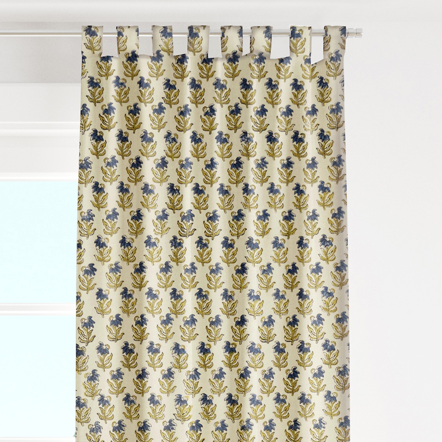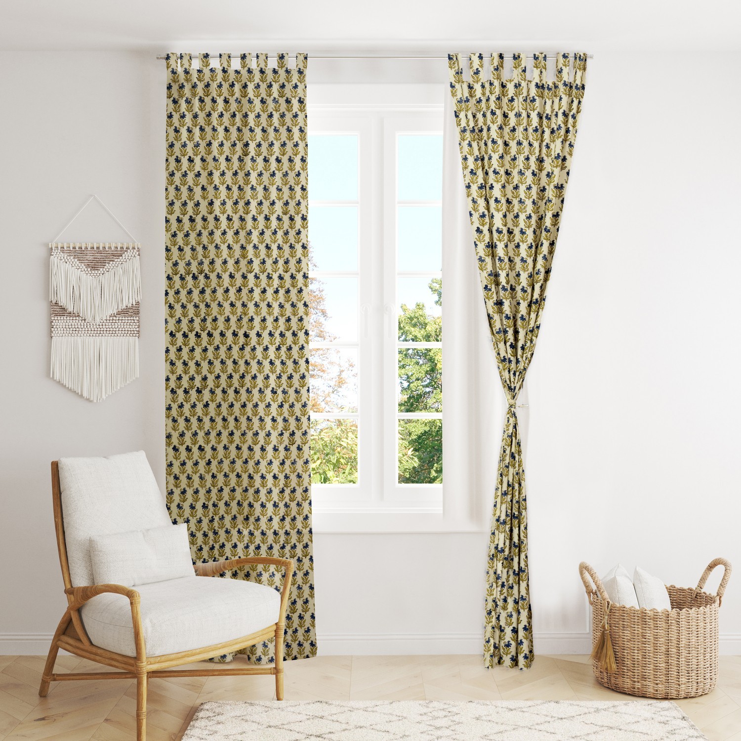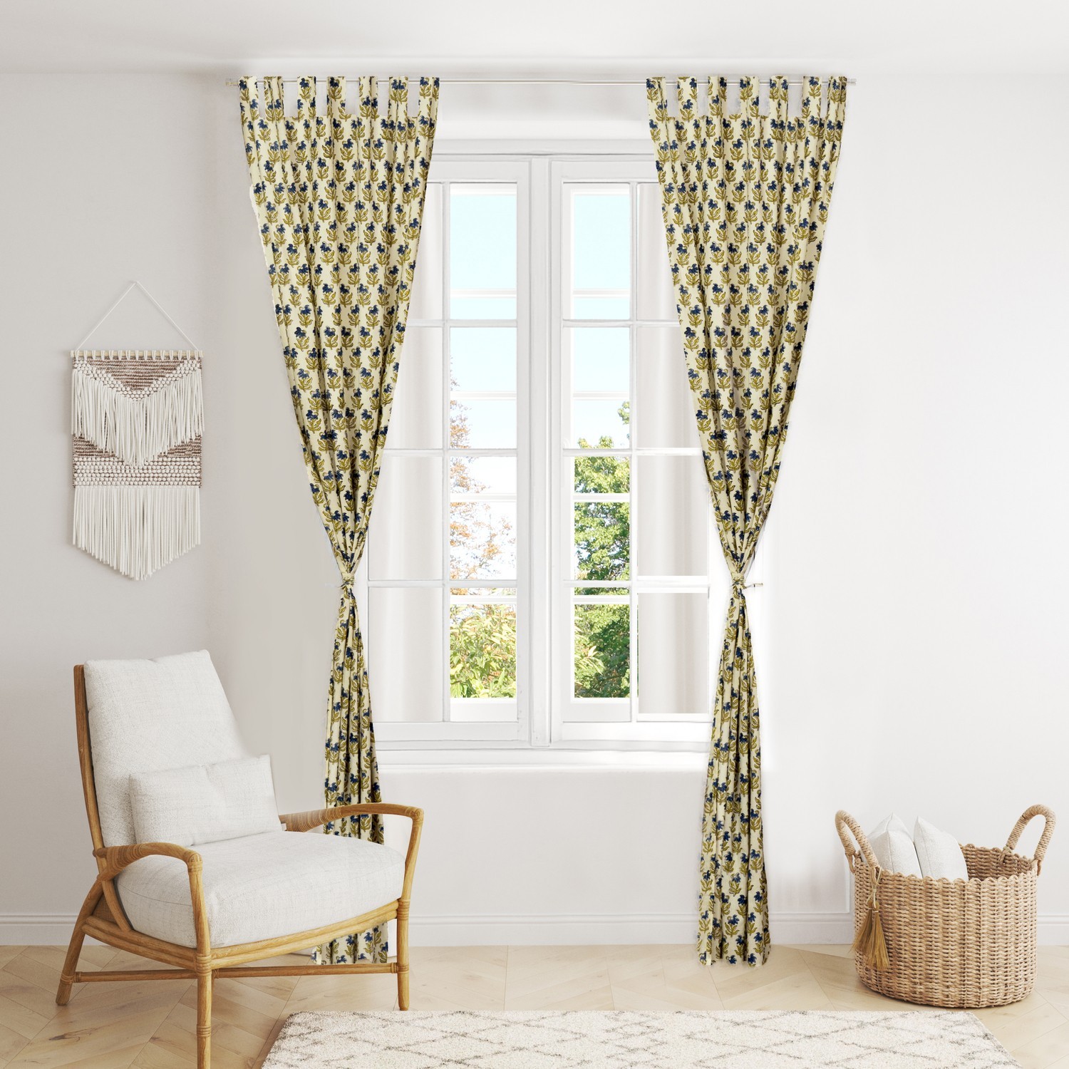 Bohemian Indian Floral Block Print Cotton Window Curtains (Set of 2)
