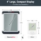 Store category Sign Up Now ! You may also like ThermoPro TP55 Digital Indoor Thermometer Hygrometer with Jumbo Touchscreen Backlight Room Temperature Humidity Monitor Equipped with professional grade sensors, the ThermoPro TP55 thermometer for house provides most accurate measurements, be it for indoor humidity or temperature, allowing you to be aware if adjustments are necessary for your household. The indoor thermometer and humidity gauge is not just highly accurate but extremely user friendly with a backlight for those nighttime last minute checks on current readings before bed. That's not all, no longer will it be necessary to unmount the device off your wall or fridge to switch settings, simply use the touchscreen display. Furthermore, this temperature gauge provides an abundance of valuable information, such as displaying 24 hour/all-time high/low records and current trends for both humidity and temperature and humidity level icons that indicate if your home is too humid, too dry or just right! Features Large Screen with Large Numbers 4" large LCD display with large numbers makes it really easy to read; Low battery indicator. Backlight Function The blue backlight is bright and makes the screen easy to read in low light when activated, and automatically turns off after 15 seconds. Touch Screen °F/°C : Fahrenheit degree and Celsius degree can switch convinently. All time/24 HRs : Allow you to see temperature/humidity in the past or last 24 hours. Real Time Temperature and Humidity Display measures humidity and temperature every 10 seconds to provide updated and accurate readings, and humidity level icons indicate current air conditions -- DRY/COMFORT/WET. Allow to See Temperature and Humidity History measures current readings and compares to 24hrs/All-time records, so if you thought it was too hot for a sweater yesterday, you can adjust your outfit appropriately. Displays the Trend of Each Reading allow you to react ahead of time, such as adjusting your thermostat or humidifier in advance. Digital Indoor Hygrometer Thermomete r Specifications: 1. Temperature range: -58°F to 158°F (-50°C ~ 70°C), accuracy ±1°F/°C Humidity range: 10% to 99% RH, accuracy ±2% ~ ±3% RH 2. Comfort Level: DRY/COMFORT/WET. If humidity is below 30%: Dry. If humidity is between 30% to 60%: Comfort. If humidity is above 60%: Wet. 3. Low battery indicator. 4. Battery Type: 2 X AAA batteries(included). 5. Tabletop, magnetic back and wall-mounted design. Package Contents: 1 x Temperature and Humidity Monitor 2 x AAA Battery 1 x User Manual Similar products ThermoPro TP50 Indoor Thermometer ThermoPro TP55 Indoor Thermometer ThermoPro TP63 Indoor Outdoor Thermometer TP63A Indoor Outdoor Thermometer Hygrometer Measures Indoor Temperature & Humidity Yes Yes Yes Yes Measures Outdoor Temperature Yes Yes Measures Outdoor Humidity Yes Waterproof and Cold-Resistant Yes Yes Backlight Yes Yes Yes Screen Size 2.7 inch 4 inch 3.2 inch 3.2 inch Remote Sensor Up to 3 outdoor remote sensors Up to 3 outdoor remote sensors Location Tracked 1 placement 1 placement 4 placement 4 placement Power 1 x AAA Battery 2 x AAA Batteries Remote: Rechargeable Battery; Receiver: 2 x AAA Batteries Remote: Rechargeable Battery; Receiver: 2 x AAA Batteries Temperature Range -58°F ~ 158°F (-50 °C ~ 70 °C) -58°F ~ 158°F (-50 °C ~ 70 °C) Indoor: -4 °F ~ 158°F (-20 °C ~ 70 °C); Outdoor: -31°F ~ 158°F (-35 °C ~ 70 °C) Indoor: -4 °F ~ 158°F (-20 °C ~ 70 °C); Outdoor: -31°F ~ 158°F (-35 °C ~ 70 °C) Payment Delivery details Return Warranty Contact us Payment 1. We only accept PayPal payment. All payments must be prepaid. 2. Please make sure your eBay address is correct. 3. Payment is required within 7 days at the end of the auction. Delivery details 1. We are not responsible for an undeliverable address. We reserve the right to charge the shipping fee again for returned items due to wrong address. 2. Items are generally shipped out the next business day after your payment has been cleared (Sat.& Sun. excluded.) 3. Orders from the United States will be shipped out via USPS. The shipment usually takes 2-5 business days (Saturday and Sunday excluded). If you need the item urgently, please contact us for detail before purchase. 4. Local pick up is not available. 5. Customers in Porto Rico, Alaska and Hawaii are recommended to contact us for shipping details (shipping cost & time) before placing an order. Return * This product comes with a 30-Day Money Back Guarantee, no restocking fee. * If you receive an item and it doesn't work properly, please contact us first, our Customer Service Representative will follow up and solve it for you! * If you don't like the item, buyers pay return shipping fees on their own cost to return products for exchange or refund. * When we're at fault, we pay the shipping on returning items. Refund will be made upon receipt of the returned item. Shipping and handling fees are non-refundable. * You must contact us to request a RMA written on the outside shipping box or on the return label before returning the item. * Please make sure the return item includes the original packaging, all accessories and user manual, etc. Warranty * This product has a 1 year manufacturer warranty. * Our warranty does not extend to any products that are physically damaged or that are not under normal operating conditions as a result of misuse or improper installation on the buyer/user's part. Contact us * Customer satisfaction is very important to us, we are always about providing quick and efficient service. * If you have any questions or concerns, please reach us via eBay message.