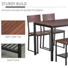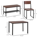 Specifications Place of Origin China Main Color Rustic Brown Main Material MDF Dangerous Goods #dangerFlag# Dimensions & Weights Assembled Length (in.) 43.25 Assembled Width (in.) 27.50 Assembled Height (in.) 30.00 Weight (lbs) 63.80 Product Features SEATS UP TO 4: This dining table set for 4 includes a dining table, 2 chairs, and a 2-person bench, great for creating a cozy dining atmosphere for the whole family. SPACING SAVING: Tuck the small kitchen table chairs and the bench underneath to create a tidy space, great for opening your dining room space up for playtime with the kids. BUILT-IN STORAGE RACKS: Metal racks under the bench provide plenty of storage space for books, seat cushions, blankets, and other daily supplies. SOLID CONSTRUCTION: This dining room table set is made of a steel frame for strength, and fitted with thick MDF seats and tabletop. A smooth surface is easy to wipe clean when there are spills or messes. DINNER SET INFORMATION: Table Dimensions: 43.25' L x 27.5' W x 30' H, Chair Dimensions:15.75' W x 17.75' D x 33.75' H. Bench Dimensions: 33.5' W x 14.25' D x 18' H. Weight Capacity: 220lbs (table), 286lbs (chair), 330lbs (bench) Description