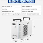 Store category Sign Up Now ! You may also like Product Description Bullet Points: Suitable for Various Models: Suitable for CNC machines, this water chiller boasts an extra-long 8m water pipe for improved reach and great engraving and cutting performance. Its efficient cooling system ensures next-levels precision. Great Cooling Efficiency: Equipped with a high-powered 0.81hp compressor, this water chiller can cool two tubes at a flow rate of 3.43gpm/h and maintain up to 150W during use. Its impressive cooling capacity of 5596Btu/hr and use of standard refrigerants ensure maximum efficiency and reliability for all your cooling needs. Reduced Water Loss: The closed 7L tank design in this water chiller reduces evaporation and provides extended cooling. The large tank capacity and clear viewing window allows easy monitoring of water levels, signalling the need for refilling only when necessary. Temperature Stability: With our water chiller's constant temperature mode and intelligent mode, you can rest assured that your cooling components will be protected from condensation during high summer temperatures. Featuring double temperature control modes, it maintains precise 0.3C accuracy, even with room temperature changes. Optimized Cooling Performance: Boost productivity with our water chiller's efficient double cooling, which cools two engraving machines simultaneously with ultra-fine temperature control. Features multi-effect safety with flow and over-temperature alarms, and compressor overcurrent protection for added peace of mind. Experience invigorating icy plunges with our Cold Plunge Chiller! Features include 8m extra-long water pipe, maximum flow rate of 3.43gpm/h, clear viewing window, and double temperature control mode. Equipped with two sets of inlet and outlet for easy setup. Take the plunge! Specification: Product name: water chiller Model: CW5202 Product size: about 56x29x43 cm/22.05x11.42x16.93 inches Water tank capacity: 7 L Voltage: 110V AC 60 HZ Packaging size: about 64x38x53 cm/25.2x14.96x20.87 inches Packaging weight: about 28670 g Packing List: Water chiller x1 Note: 1. Due to the different display and lighting effects, the actual color of the product may be slightly different from the color shown in the picture. Thanks! 2. Due to manual measurement, a measurement deviation of 1-3cm is allowed. Payment Delivery details Terms of sales About us Feedback & DSRs Payment Before you palce an order, please kindly make sure that you have a paypal account. We accept PAYPAL payment only. Payment should be completed within 2 days after auction closed, or unpaid dispute will be filed for an closing auction. An unpaid case will be filled after 4 days. Delivery details We ship to your eBay address. Each package will be shipped to US by UPS Regular Parcel with tracking number. Please check your shipping address carefully before checkout, it can't be changed if order completed. All items will be shipped within 1-2 business day upon receipt of payment.Orders placed on weekend will be shipped within 3 days. If you do not receive your item in 7-10 business days.please contact us immediately for further assistance. We will be responsible for any damages or losses incurred in the shipping process. About us We maintain high standards of excellence FIVE STAR and strive for 100% customer satisfaction! Positive Feedback is very important to us. We hope that you contact us immediately Before you give us neutral or negative feedback, so that we can satisfactorily address your concerns. We promise to offer the lowest price and high quality produce. Our working time: From Monday to Friday(9:30 am to 18:00pm), we don't working on holidays ,hope you can understand and know that , thank you. Please always talk to us via ebay Message. We appreciate your business and look forward to growing our e-Bay sales with satisfied customers. Feedback Contact us If you have any questions, please feel free to contact with us by ebay Message during our business hours ( 9:30a.m. to 5:30 p.m.), or email us through eBay, we will try our best to help you to resolve it. For any presale or after-sale questions,please do feel free to email us! Due to the time difference, each email will be replied within 1 working day,and weekend will be delayed a bit. Feedback