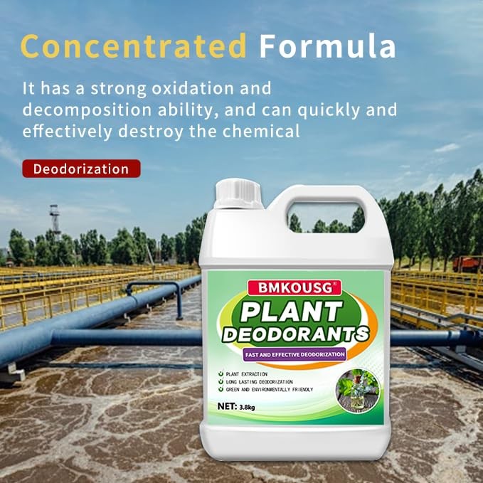 Sink Odor Eliminator, Plant Deodorizer Liquid, Trash Can Deodorizer, Osmanthus Scent Freshener Liquid - Suitable for a Variety of Smelly Places to Refresh the Air and Eliminates Odor Feature: How to use: 1. Space spray deodorization: Use spray deodorization equipment to spray deodorizer around sewage pools and garbage sites to quickly remove the odor that permeates the surrounding space. 2. Use with deodorization equipment: Add to absorption towers, water washing towers and other equipment to improve the deodorization effect. 3. Flushing method: After the product is diluted, it can be used to flush the ground, sewage residual ditches and other odorous areas. Dosage used: 1.Deodorizing the Farm: Dilute the deodorant 50-150 times and spray it evenly on all aspects of the farm (including the ground, corners, cages, excrement troughs, etc.) with a sprayer. Spray 2-3 times a week at first, until the odor subsides, you can spray once a week or 2-3 times a month. 2.Septic Tank Deodorization: According to the existing capacity of the septic tank, dilute it 10 times at a ratio of one thousandth (1 kg of deodorant per cubic meter) and pour it evenly into the tank. 3.Deodorization of Organic Wastewater: Deodorization treatment of organic wastewater from slaughterhouses, food processing plants, leather processing plants, etc., spray 1 kg of deodorant per ton of wastewater or add it evenly from the wastewater outlet. Specification: Weight: 1 KG Package include: 1 x Plant Deodorant 【Natural Deodorant】The raw materials of this air freshener are extracted from more than 30 kinds of natural herbal and flower ingredients, including mint, ginkgo leaves, grape seeds, wormwood, lotus, lavender, lemongrass, tea polyphenols, eucalyptus oil and other plants. The fragrance is fresh, natural, long-lasting and rich. 【Super Concentrated Formula】The garbage deodorizer adopts a professional deodorizing concentrated formula, which can be diluted 200 times for use. The deodorizing effect is obvious and rapid, leaving a fresh and clean osmanthus scented environment. 【Powerfully Fresh Air】Septic tank freshener can adsorb odor molecules, effectively absorb odors, change the molecules, and powerfully decompose the odor into odorless molecules, while leaving behind the fragrant osmanthus scent. 【Environmental Protection and Safety】 The raw materials of sewer deodorant are extracted from a variety of natural plant ingredients, do not contain any irritating chemicals, are friendly to the environment and animals, are environmentally friendly and safe, and can be used with confidence. 【Wide Range of Applications】This powerful deodorizer is ideal for garbage dumps, breeding farms, sewage plants, septic tanks, sewer, spray towers, slaughterhouses and other odorous places, helping to remove unpleasant odors and bring a long-lasting fresh smell.