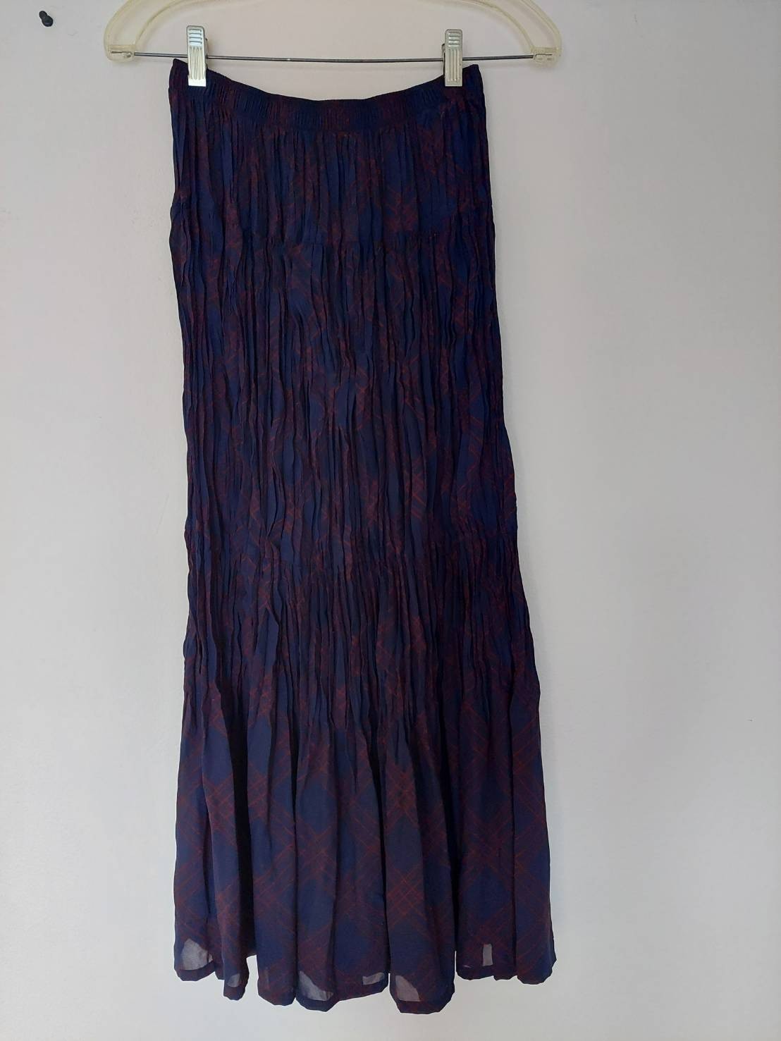 From the Ines De La Fressange x Uniqlo collaboration, this cotton pencil midi skirt offers a chic, tailored silhouette in a versatile blue, gray, and red pattern. The breathable cotton fabric makes it comfortable for all-day wear while maintaining a polished look. Details: Brand: Ines De La Fressange x Uniqlo Size: Women’s Small Color: Blue, gray, and red Style: Pencil midi skirt Material: 100% Polyester Condition: Brand New Perfect for pairing with a blouse for work or a tee for a casual yet sophisticated look.