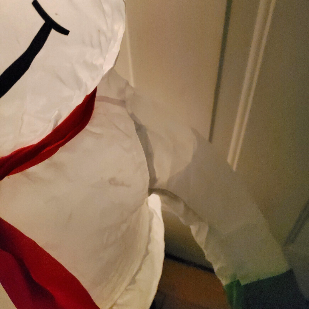 48" Lighted Inflatable Snowman Christmas Yard Decoration with Box & Accessories Condition: Used; tested and working. Light staining on arm and slight fabric wear from previous use. Includes original box, power adapter, stakes, and tethers. See photos for details. Description: Festive 48-inch illuminated inflatable snowman featuring a black top hat, red scarf, and cheerful smile. This classic holiday decoration brings warmth and charm to any yard, porch, or indoor display. The built-in fan provides quick inflation, while the internal light creates a soft nighttime glow. Perfect for spreading Christmas cheer, this snowman is easy to set up and store. Includes original box and accessories (stakes, tethers, adapter, and instructions). Details: • Height: 48" (122 cm) • Color: White, red, green, black • Includes: Fan, light, stakes, tethers, adapter, and box • For indoor or outdoor use • Power: Standard plug-in adapter (UL approved) • Condition: Light marks and wear consistent with prior display — see photos Shipping: Will be shipped in 1–2 business days. Combined shipping not available for this item. Why Buy This Item: Add classic holiday spirit to your home with this glowing inflatable snowman — a cheerful, nostalgic addition to your seasonal décor. Visit My Store: Check out more vintage and holiday items at Kelly Vintage Market .