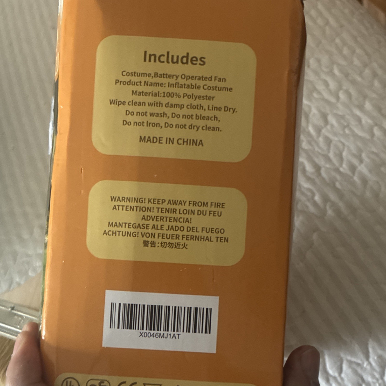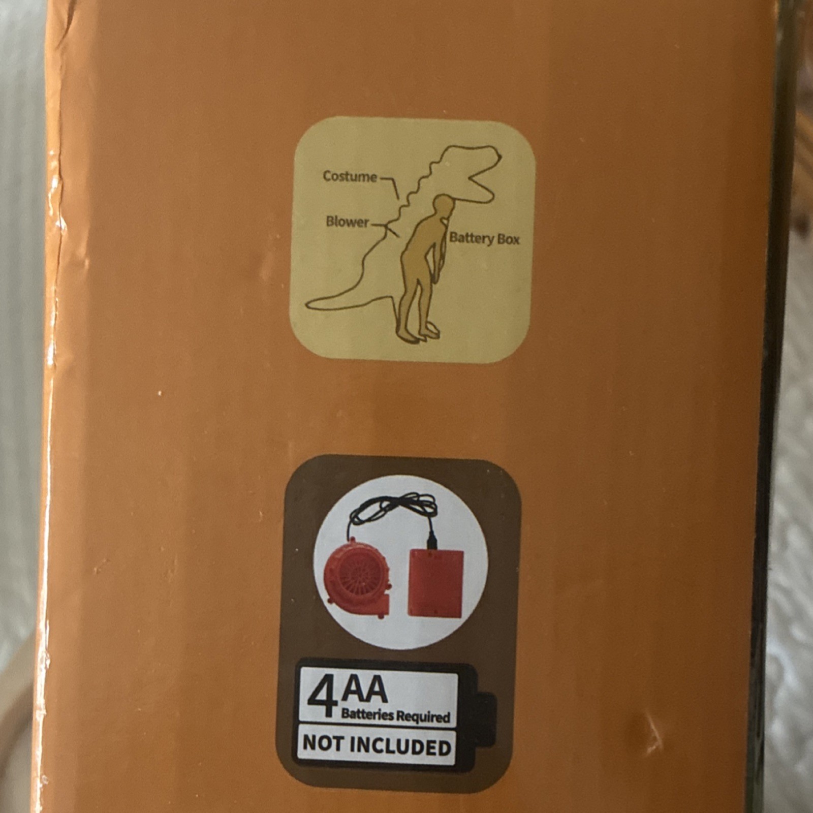 Inflatable Dinosaur Costume M Orange Battery Operated Fan Polyester 1020