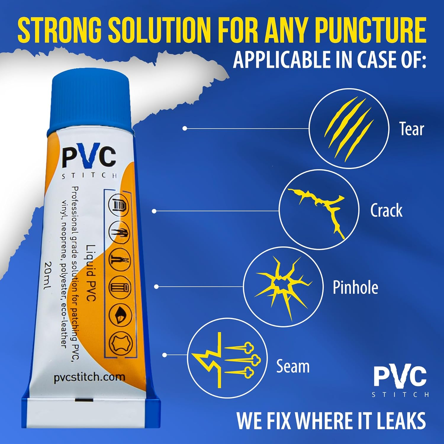 Store New Arrivals Add to Favorite View Feedback Contact Paddle Board Patch Kit, Inflatable Paddleboard Patch, ISUP Patch, Inflatable Boats Patch, Rafts Patch, Underwater Gear Patch, above Ground Pools Patch, Hot Tubs Patch, and Much More Description Warranty Description Lifetime Item Dimensions LxWxH 4.06 x 0.91 x 0.91 inches Color Transparent Material PVC Package Weight 0.03 Kilograms Item Weight 30 Grams Suggested Users unisex-adult Number of Items 1 Model Name Paddle Board Patch Size Small Item Package Dimensions L x W x H 4.33 x 1.34 x 1.3 inches Included Components 1 tube with sealant, 20 ml. PVC Stitch Paddle Board Liquid Patch is a heavy duty reliable fast drying salt-water ready adhesive for Instant Repairs of Inflatable Paddle Boards, Inflatable Kayaks, iSUPs, Inflatable Hot Tub Repair kit, Kayak Patch kit, Float Repair kit, Waders Repair kit, Patch Kit for Inflatables, Patch for Above Ground Pools, Pool Liner Repair kit, Air Track Patch Kit, PVC Glue, PU Glue, Inflatable Glue Method Of Use: This is liquid PVC that will become a permanent patch when it dries out. No other patches are needed. 1. Deflate your inflatable completely and put it on a flat surface. The repaired part should be dry & clean. 2. Cover the rip with the sealant evenly with no omissions. Do not smear into a thin layer. 3. Ready to use in 2 HRS. Max strength for pressure over 50 PSI - 6 HRS if used in room or higher temperatures. Store at room temperatures Strong Fix for Any Puncture: PVC Stitch Paddle Board Repair Kit comes with liquid PVC glue sealant, making it easy to restore any tear, crack, hole, or puncture in your inflatable. It's the perfect way to quickly and reliably fix any leaks and keep your inflatable paddle board, kayak, raft, iSUP, floats, inflatable Hot Tub, or Above Ground Pool in great shape. PVC Stitch Paddle Board Patch is a Water Resistant, Salt-water-ready, Sealant for Outdoor & Water Gear, UV Resistant Adhesive, Heat & Cold Resistant Caulk. Water Resistant Glue. Greater damage resistance, High adhesion & Easy handling. Will not work on nylon-based materials. PVC Stitch liquid patch consists of 1 tube (20 ml). Shelf life – 2 years. Transparent color. Product Description ABOUT US We offer the best prices around on high quality products. Our E-store includes media such as books, movies, music and games while offering electronics, toys, sporting apparel, clothing, tools, general home, garden items and more. SHIPPING We are always working hard to ensure your package arrives as soon as possible. Please understand that some factors like weather, high postal traffic, and the performance of shipping companies are outside of our control. We offer free shipping to the lower 48 states and ship within 2 business days of payment, usually sooner. We do not accept P.O. Boxes. Please provide a physical address. For shipping outside of the continental USA, we only use eBay's Global Shipping Program.The item is shipped to KY and then sent to the rest of the world. International customers are responsible for all duties and taxes. Continue to check out in order to calculate costs for shipping the item to your country. Messages regarding eBay's Global Shipping Program MUST be directed at eBay EXCLUSIVELY. RETURNS We offer a 30-Day Return Policy on items which you are not completely satisfied with. You have the option for a full-refund or an exchange of the item. No returns are available on items shipped outside of the USA. PAYMENT We accept PayPal. CONTACT US This page content is yet to come Please ad us to your favorite seller and visit again later Thank You CUSTOMER SATISFACTION We try our very best to make sure every customer is completely satisfied. If there's a problem, message us! We're happy to help. WE ACCEPT Copyright © 2021 AutoDS. | All Rights Reserved