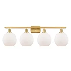 A truly dynamic fixture, the Ballston fits seamlessly amidst most décor styles. Its sleek design and vast offering of finishes and shade options makes the Ballston an easy choice for all homes.Fixture can be hung with bulbs facing up or down4.5" x 6" 2mm heavy cast backplateRated for 100 watt maximum per socketUL/CUL Damp RatedCompatible with Incandescent, LED, Fluorescent and Halogen bulbsFinish Options: Antique Brass, Antique Copper, Black Antique Brass, Brushed Brass, Brushed Satin Nickel, Matte Black, Oil Rubbed Bronze, Polished Chrome, Polished Nickel, Satin Gold, White and Polished ChromeShade Options: Clear Clear, Matte White, or SeedyInstall Orientation: HorizontalBulb Shape: ST64Socket Type: Medium BaseLamp Type Details: BB-60-ALight Bulb Not IncludedFixture Dimmable: Yes Free Shipping Over $49.99* Details Innovations Lighting Ballston Athens - 4 Light 36" Bath Vanity Light - 8" Shade Product Description: A truly dynamic fixture, the Ballston fits seamlessly amidst most décor styles. Its sleek design and vast offering of finishes and shade options makes the Ballston an easy choice for all homes. Fixture can be hung with bulbs facing up or down 4.5" x 6" 2mm heavy cast backplate Rated for 100 watt maximum per socket UL/CUL Damp Rated Compatible with Incandescent, LED, Fluorescent and Halogen bulbs Finish OptionsAntique Brass, Antique Copper, Black Antique Brass, Brushed Brass, Brushed Satin Nickel, Matte Black, Oil Rubbed Bronze, Polished Chrome, Polished Nickel, Satin Gold, White and Polished Chrome Shade OptionsClear Clear, Matte White, or Seedy Install OrientationHorizontal Bulb ShapeST64 Socket TypeMedium Base Lamp Type DetailsBB-60-A Light Bulb Not Included Fixture DimmableYes