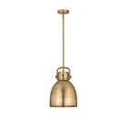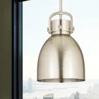 The Newton Sphere is a modern industrial collection that incorporates exceptional architectural details with a beautiful globe shaped shade. The iconic sphere shaped shade is available in either glass or heavy spun metal, making this collection perfect for creating a truly exceptional space.The metal shade is easily removed with the four oversized thumb screws for cleaningUL/CUL Damp RatedRated for 100 watt maximumCompatible with Incandescent, LED, Fluorescent and Halogen bulbsSloped ceiling compatibleIncludes 30" of stems for hanging the fixture with one 6 inch and two 12 inch sectionsInside finish of the shade matches the outsideFeatures bold architectural detail with heavy spun metal shadeWeight: 4.55 poundsBulb Shape: ST64Socket Type: E26Light Bulb Included: NoFixture Dimmable: Yes Free Shipping Over $49.99* Details Innovations Lighting Newton Metal Bell - 1 Light 10" Stem Hung Pendant Product Description: The Newton Sphere is a modern industrial collection that incorporates exceptional architectural details with a beautiful globe shaped shade. The iconic sphere shaped shade is available in either glass or heavy spun metal, making this collection perfect for creating a truly exceptional space. The metal shade is easily removed with the four oversized thumb screws for cleaning UL/CUL Damp Rated Rated for 100 watt maximum Compatible with Incandescent, LED, Fluorescent and Halogen bulbs Sloped ceiling compatible Includes 30" of stems for hanging the fixture with one 6 inch and two 12 inch sections Inside finish of the shade matches the outside Features bold architectural detail with heavy spun metal shade Weight4.55 pounds Bulb ShapeST64 Socket TypeE26 Light Bulb IncludedNo Fixture DimmableYes