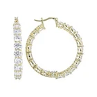 Add a touch of elegance to your look with these stunning hoop earrings. Crafted from 14K gold over sterling silver, these earrings feature lab-created simulated diamonds with a prong setting. The earrings are designed in a hoop style with a secure lock back closure, making them perfect for any occasion like Christmas, anniversary or birthday. The white/colorless simulated diamond adds a touch of beauty to the earrings, making them perfect for the lobe area. The earrings are 2 inches in length and are part of the Sterling brand. Give yourself a gift of beauty with these Inside Outside 23.20CTW Diamond Hoop Earrings.