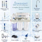 New Insight Biosciences 5-Stage CE Certified Reverse Osmosis Water Filtration System Product Details PREMIUM QUALITY FILTERS :- The Insight Biosciences reverse osmosis system is built with super long-lasting filters; Our 5 Stage, ROS5-50, under Sink water filter system is the most durable system in the industry and will last for decades; It is designed, assembled, and engineered to guarantee water quality and safety HIGH PERFORMANCE RO WATER FILTER SYSTEM :- Our CE certified, ROS5-50 reverse osmosis filtration system is the only technology able to remove up to 99% of contaminants, removes heavy metals, including arsenic, cadmium, lead, mercury and many more; Also, removes chlorine, fluoride VOCs and 1000+ contaminants; Enjoy clean, safe, great tasting water every time you turn on the faucet EASY INSTALLATION AND MAINTENANCE :- Now you do not need to waste money on professional installation; Our water filter system is designed for do-it-yourself installation with all parts and filters included for the best do-it-yourself installation experience; This countertop reverse osmosis filter fits under a standard kitchen sink EQUIPPED WITH PREMIUM FAUCET & PARTS :- Our under-sink & countertop filtration system comes with our premium, 100% lead-free, designer faucet, along with NSF Certified Food grade tubing and parts to provide contamination-free, safe and pure water; High quality leak-free quick connect fittings provide a guaranteed grip and does not rely on a water leak detector to protect your home like other brands