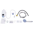 Specifications Color: White Material: ABS, Stainless Steel Shape: Gourd-shaped Style: Mini, Instant Mounting Type: Wall-mounted, Vertical Usage: Indoor Use Features: With Leakage Protection Water Inlet Mode: Lower Water Inlet Heating Method: Instant, Stainless Steel Heating Tube Power Source: Corded Electric Voltage: 110V Frequency: 50Hz Power: 3500W Rated Pressure: 0MPa Operating Pressure: 0.04-0.4MPa Anti-Electric Shock Type: I Waterproof Grade: IPX4 Wire Requirements: >2.5m² Circuit Breaker Switch: >16A Heating Time: 3s Interface: 1/2"NPT Heating Temperature: 20-55℃/68-131℉ Power Cord Length: 0.9m/2.95ft Water Inlet Hose Length: 50cm/19.68inch Water Heater Size: 19*7.5*7.5 cm/7.48*2.95*2.95 inch Package Size: 27*28*12cm/10.6*11.02*4.7inch Net Weight: 1.35kg Instant Electric Bathroom Hot Water Heater With Shower Head White 110V 3500W Instant Electric Bathroom Hot Water Heater With Shower Head White 110V 3500W Without shower, hose, bracket. Description Our water heater uses a stainless steel heating core with 3500w large power, providing you with instant hot water and allowing for a comfortable washing/shower experience. In addition, it adopts multiple protection designs such as leakage protection, dry-heating protection, and grounding protection, ensuring high safety of water use. The mini body and modern appearance make it a great companion for a sink, faucet, or bathroom. Specifications Color: White Material: ABS, Stainless Steel Shape: Gourd-shaped Style: Mini, Instant Mounting Type: Wall-mounted, Vertical Usage: Indoor Use Features: With Leakage Protection Water Inlet Mode: Lower Water Inlet Heating Method: Instant, Stainless Steel Heating Tube Power Source: Corded Electric Voltage: 110V Frequency: 50Hz Power: 3500W Rated Pressure: 0MPa Operating Pressure: 0.04-0.4MPa Anti-Electric Shock Type: I Waterproof Grade: IPX4 Wire Requirements: >2.5m² Circuit Breaker Switch: >16A Heating Time: 3s Interface: 1/2"NPT Heating Temperature: 20-55℃/68-131℉ Power Cord Length: 0.9m/2.95ft Shower Hose Length: 1.5m/4.9ft Water Inlet Hose Length: 50cm/19.68inch Water Heater Size: 19*7.5*7.5 cm/7.48*2.95*2.95 inch Package Size: 27*28*12cm/10.6*11.02*4.7inch Net Weight: 1.35kg/2.97 lbs Gross Weight: 1.4kg/3.08 lbs Features Premium Material: The instant water heater uses stainless steel and high-quality ABS materials, making it sturdy, wear-resistant, anti-rust, and long-lasting. A Safe Heater: The various protections such as leakage protection, dry-heating protection, anti-electric wall technology, water-electricity isolation, overvoltage protection, thermostatic anti-scalding protection, over-temperature protection, grounding protection, and IPX4 waterproof rate make it safe to use without any worries. Instant Heating: Using a stainless steel heating tube with 3500w high power, this water heater can deliver warm hot water in about 3 seconds without storing water for preheating, which saves time/energy and prevents sediment/scale accumulation. Temperature Controllable: You can control the water temperature (68-131℉) by adjusting the water flow (large/small water flow--low/high temperature) and pressing the+/- keys on the panel, providing hot water that fits four seasons in a year. LED Display: The digital screen displays the water temperature and power, so you can keep track of them and get the desired temperature easier. Anti-scaling Design: It can filter the sediment, rust, and other large particles in the tap water, restore the tap water to the factory state, reduce energy consumption, and avoid damage to the human body and skin. Low Water Pressure Startup: The advanced temperature sensing technology overcomes the difficulty of using water heaters due to low water pressure, making it suitable for residential buildings with water pressure up to 0.04MPa. Cost-effective: The tankless water heater with 98% thermal efficiency can automatically regulate the power according to the water flow and temperature change, saving energy up to 50%. Only when it is used the water can be heated to the required place, eliminating the waste of unused water in the long water pipeline between the central water heater and each faucet. Mini Appearance: This mini wall-mounted white instant water heater with a unique gourd-shaped design and 4.6*2.8*6.3 inches size plays a decorative role and does not occupy much space. Simple Installation: With the equipped accessories, premade fixing screw holes, English manual, and 1/2" standard interfaces, you can install this heater easily. Details Power Cable: The 2.95ft power cable allows for easy installation in your cupboard or under the sink. Stainless Steel Hose: The 4.9ft freely bendable shower hose allows you easily to flush wherever you want and take a shower at your leisure. Hand Spray: The evenly distributed outlet holes of the hand spray provide you with softer and finer water for a better shower experience. Touch Button: The new-generation touch button with electronic control has a longer lifespan and good sealing. It resists wet and water and avoids mechanical failure of buttons. Application It is suitable for kitchens, cupboards, bathrooms, daily washing, RVs, bars, schools, hospitals, communities, hair salons, and so on to wash hands, dishes, clothes, and face. You can also take a shower above 0.04MPa water pressure. Package Included 1* Instant Water Heater 1* Hand Spray 1* Shower Hose 1* Water Inlet Hose 1* Flow Regulating Valve 1* Hand Spray Holder 1* English Instruction Other Accessories for Assembly How to Install Fix it through the premade screw holes at the proper position on the wall. Install the water flow regulating valve at the blue electric water inlet under the water heater. Install an electric partition wall at the red water outlet above the water heater. Connect the water inlet hose to the water flow regulating valve. Connect the water inlet. Connect the shower hose to the electric partition wall. Install the hand spray holder in the proper posit
