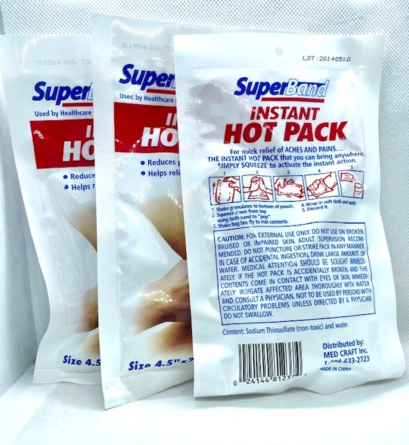 Instant Hot Pack ( 3 Pack ) -Reduces pain and sore muscles -Helps relieve stiff neck and backaches -Non - Toxic with Acesodyne