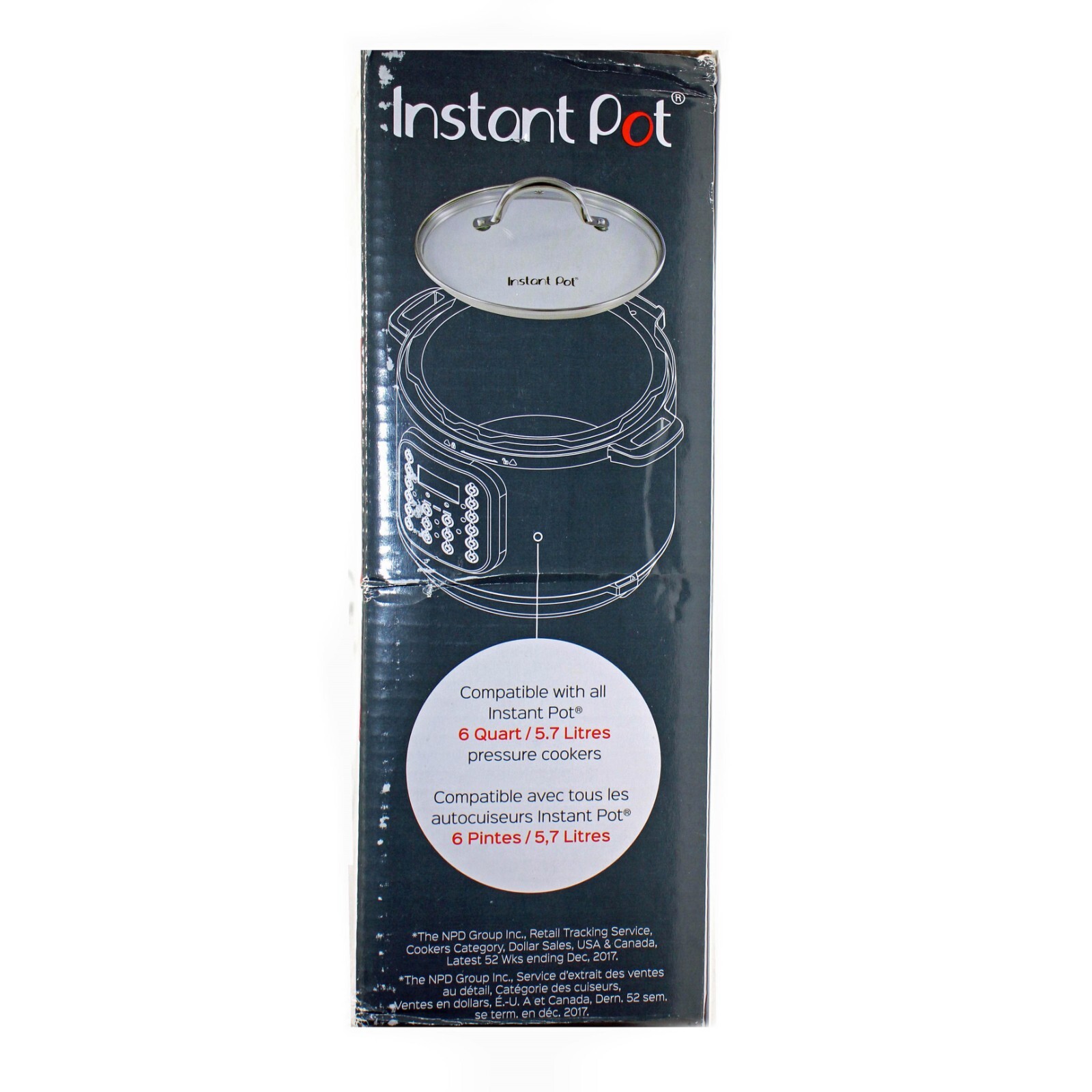 Instant Pot Tempered Glass Lid Clear Compatible with 5.7 Litres 6 Quart 9.1 x 9.1 x 2.8 inches About this item The Instant Pot glass lid can be used instead of the pressure lid when slow cooking, sauteing / browning or using the keep warm function Colourless tempered glass, large Stainless Steel lid knob. It has a steam release vent to reduce condensation on the underside of the lid It is dishwasher safe and can also be used on the stainless-steel inner pot in the oven up to 220c.