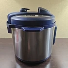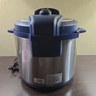 The Instant Pot Lux Blue is a 6-quart electric pressure cooker that can function as a multi-cooker, keep warm setting, and digital timer. It features a locking lid, stay-cool handles, and cool-touch exterior for safety. The cooker has 10 settings/programs, including a safety valve, and can automatically switch off. It comes with a pot, lid, and inner pot, and has a stainless steel finish. The Instant Pot Lux Blue has a diameter of 10 inches, a height of 12 inches, and weighs 14 lbs.