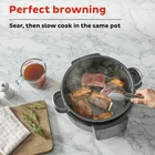 The Instant Pot Superior Cooker Chef Series, from the makers of Instant Pot®, is the multi-cooker that can sear/sauté, slow cook/roast, steam, warm and more. Use the sauté function to sear the food, then slow cook, adding great flavor all in one pot! Use the cooker’s pre-set temperature settings or adjust the settings to fit your favorite recipes. When you’re done, cleanup is simple with a dishwasher-safe glass lid and ceramic-coated non-stick cooking pot. This do-it-all multi-cooker from Instant will become your go-to cooking appliance, creating deeply flavorful meals at home. Item #: 140-6128-01 4-IN-1 FUNCTIONS: Slow cook/roast, sear/sauté, steam and warm REPLACES 8 COOKING APPLIANCES AND TOOLS: Slow cooker, steamer, sauté pan, saucier, warmer, roaster, braiser, non-stick pot 7.5 QT LARGE CAPACITY: Deep skillet with more cooking area than a 12" skillet; can easily fit 5 pounds of chicken or 3 racks of ribs DELICIOUS ONE POT MEALS: Sears food using sauté function to seal in flavor before slow cooking; reduces sauce after slow cooking with sauté function for thicker sauce FLEXIBLE SETTINGS: Adjust the cooking settings to fit your recipe COOK FROM OVEN TO TABLE: Versatile aluminum cooking pot can go from cooker to oven (safe up to 350° F) and to table NEW STAY-COOL HANDLE: Glass lid has stay-cool knob and cooker base has handles that make holding and carrying easy FAMILY SIZED PORTIONS: Holds up to 7 servings EASY TO CLEAN: Dishwasher-safe glass lid and non-stick ceramic coated aluminum cooking pot DURABLE AND POWERFUL: 800 watts, 120 V~ 60 Hz, UL & ULC Listed Item #: 140-6128-01 Brand Instant Assembled Product Weight 12 lb Volume Capacity 7.5 qt Cord Length 3 ft Maximum Temperature 400 ºF Watts 1000 W Features Built-In Timer, Digital Display, Dishwasher Safe Parts, Non-Stick, Removable Cooking Surface, Temperature Control, Temperature Display, Touchpad Controls Manufacturer INSTANT BRANDS Manufacturer Part Number 140-6128-01 Model 140-6128-01 Assembled Product Dimensions (L x W x H) 16.30 x 16.30 x 12.00 Inches