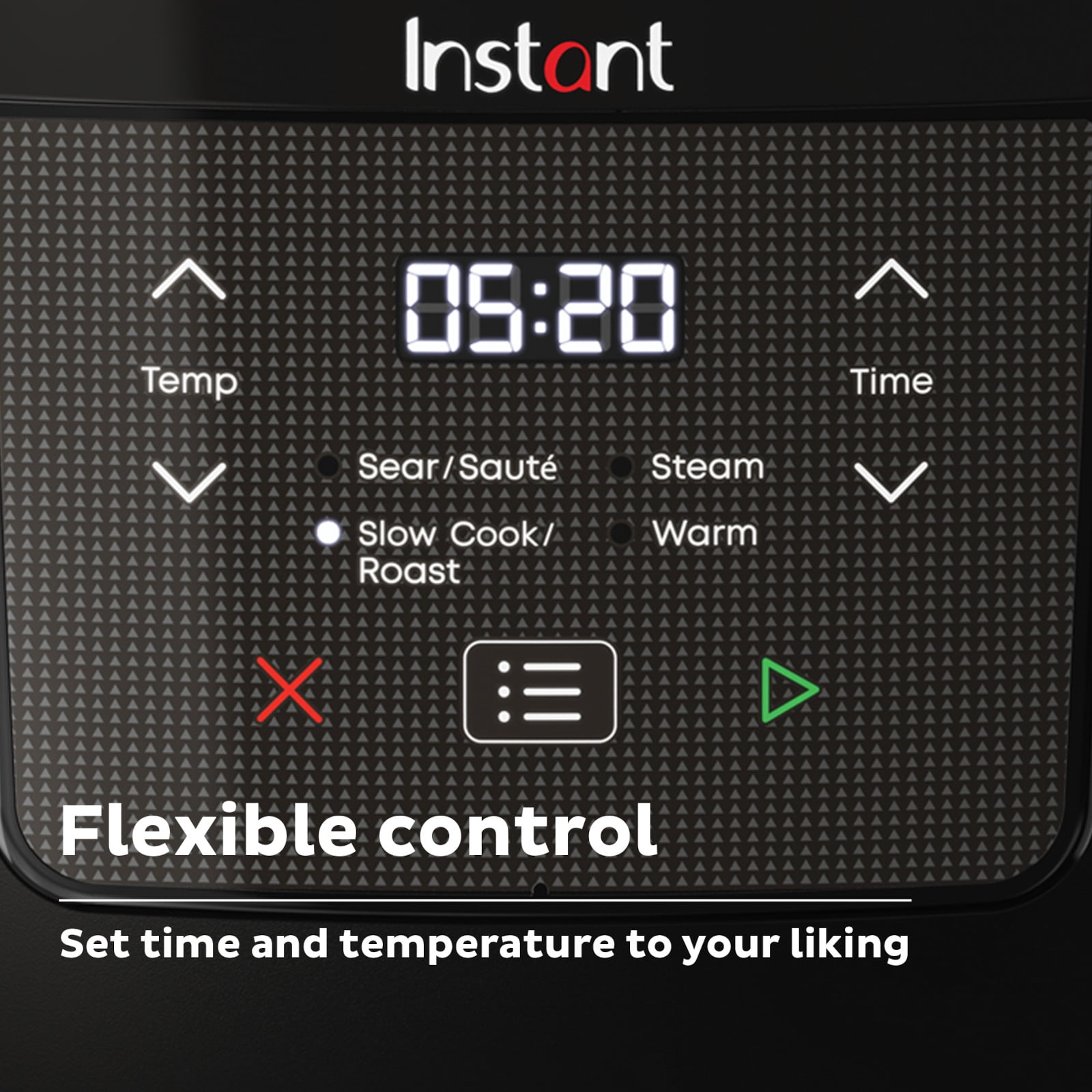 The Instant Pot Superior Cooker Chef Series, from the makers of Instant Pot®, is the multi-cooker that can sear/sauté, slow cook/roast, steam, warm and more. Use the sauté function to sear the food, then slow cook, adding great flavor all in one pot! Use the cooker’s pre-set temperature settings or adjust the settings to fit your favorite recipes. When you’re done, cleanup is simple with a dishwasher-safe glass lid and ceramic-coated non-stick cooking pot. This do-it-all multi-cooker from Instant will become your go-to cooking appliance, creating deeply flavorful meals at home. Item #: 140-6128-01 4-IN-1 FUNCTIONS: Slow cook/roast, sear/sauté, steam and warm REPLACES 8 COOKING APPLIANCES AND TOOLS: Slow cooker, steamer, sauté pan, saucier, warmer, roaster, braiser, non-stick pot 7.5 QT LARGE CAPACITY: Deep skillet with more cooking area than a 12" skillet; can easily fit 5 pounds of chicken or 3 racks of ribs DELICIOUS ONE POT MEALS: Sears food using sauté function to seal in flavor before slow cooking; reduces sauce after slow cooking with sauté function for thicker sauce FLEXIBLE SETTINGS: Adjust the cooking settings to fit your recipe COOK FROM OVEN TO TABLE: Versatile aluminum cooking pot can go from cooker to oven (safe up to 350° F) and to table NEW STAY-COOL HANDLE: Glass lid has stay-cool knob and cooker base has handles that make holding and carrying easy FAMILY SIZED PORTIONS: Holds up to 7 servings EASY TO CLEAN: Dishwasher-safe glass lid and non-stick ceramic coated aluminum cooking pot DURABLE AND POWERFUL: 800 watts, 120 V~ 60 Hz, UL & ULC Listed