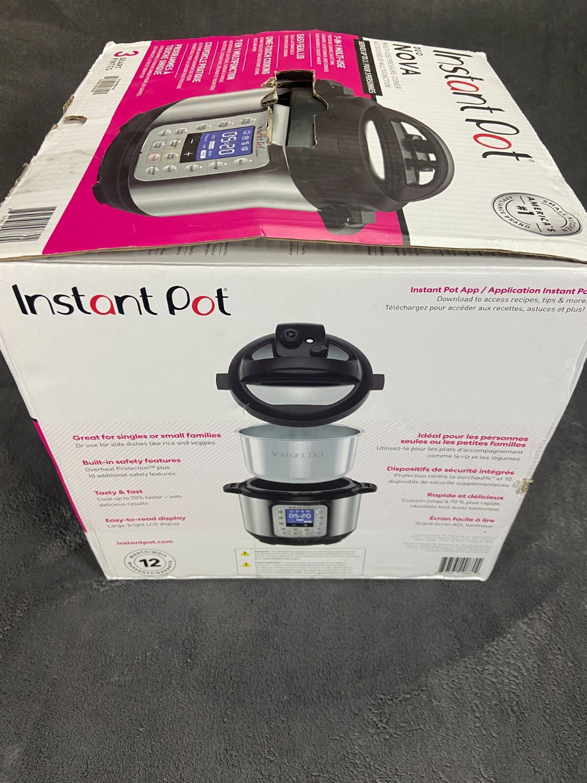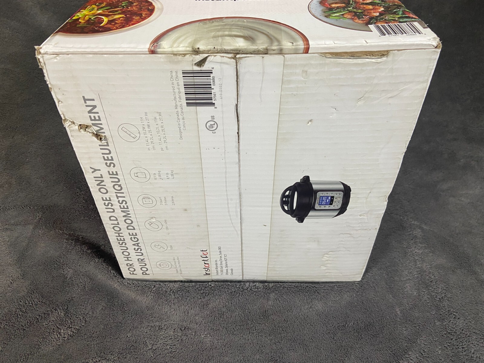 Instant Pot Duo 7-in-1 3 Quart Multi Use Pressure Cooker - Stainless/Black NEW Open Box No major defects. See photos for details. Measurements in photos. Please send any questions, comments or concerns. Returns always accepted. Thanks for looking! Mark The Thrifty Noob THIFTY NOOB PROMISE: If you are unhappy in any way when your package arrives, please reach out to me first before leaving feedback or contacting EBay. I WILL find a way to make it right for you. Customer satisfaction is my number one goal!