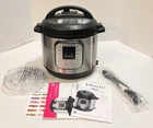 Product details You want your family to have meals that are nourishing and tasty, but between your busy career and shuttling the kids to school and extracurricular activities, you don't have the time to spend on labor-intensive cooking. If you're seeking a convenient and delicious way to feed your family, try the Instant Pot Duo 6QT Stainless Steel Pressure Cooker with 7-in-1 Functions. Designed with your busy, health-oriented lifestyle in mind, the Instant Pot Duo is a 7-in-1 multifunctional pressure cooking powerhouse. Whatever your food preparation needs, this durable cooker is up to the task: it functions as a pressure cooker, slow cooker, rice cooker, yogurt maker, steamer, sauté pan and food warmer. You can use it for browning or sauteing meat or vegetables, and as a warmer for re-heating leftovers. Dual pressure settings offer fast and flexible cooking, and the high pressure setting reduces cooking time by up to 70%. Safe and reliable, the Instant Pot Duo is an asset to your fast-paced, health-conscious lifestyle. 7-IN-1 FUNCTIONALITY: Pressure cook, slow cook, rice cooker, yogurt maker, steamer, sauté pan and food warmer. QUICK ONE-TOUCH COOKING: 13 customizable Smart Programs for pressure cooking ribs, soups, beans, rice, poultry, yogurt, desserts and more. COOK FAST OR SLOW: Pressure cook delicious one-pot meals up to 70% faster than traditional cooking methods or slow cook your favorite traditional recipes – just like grandma used to make. QUICK AND EASY CLEAN UP: Finger-print resistant, stainless-steel sides and dishwasher-safe lid, inner pot, and accessories. SAFETY FEATURES: Includes over 10 safety features, plus overheat protection and safe-locking lid GREAT FOR GROWING FAMILIES: Cook for up to 6 people – perfect for growing families, or meal prepping and batch cooking for singles. VERSATILE INNER COOKING POT: We use food-grade stainless-steel, a tri-ply bottom for more even cooking and perfect for sautéing DISCOVER AMAZING RECIPES: Download our free Instant Pot app, so you can create quick new favorites and prepare delicious meals, available iOS and Android.