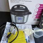 Very lightly used almost new The Instant Pot Duo Mini 9-in-1 3qt Electric Pressure Cooker in Silver is a versatile and efficient kitchen appliance. Made of stainless steel with a sleek black stainless steel finish, this slow cooker features non-slip feet, digital timer, steam basket, keep warm function, and easy clean design. With 11 settings/programs and programmable features, this Instant Pot Duo Mini is perfect for home cooking. The 700W power source ensures quick and efficient cooking, while the 120V voltage makes it suitable for use in most kitchens.