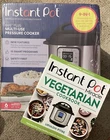 Introducing the Instant Pot Duo Plus 6QT 9 In 1 Multi-Use Pressure Cooker & Instant Pot Cookbook. This electric pressure cooker is made of stainless steel and has a capacity of 6 quarts. It comes with a variety of features such as safety valve, auto shut-off, multi-cooker, steam basket, programming, cool-touch exterior, non-stick, adjustable, dishwasher safe, locking lid, digital timer, timer, keep warm setting, and easy clean. The cooker also comes with a pot and a brushed finish. With a power of 1000 W and voltage of 120 V, this pressure cooker is perfect for any kitchen. It has a depth of 13 inches, a height of 13 inches, and a width of 13 inches. The item weight is 16 Lbs and it has a single setting/program. The Instant Pot Duo Plus is perfect for those who want a versatile and reliable pressure cooker. Cookbook: Instant Pot Miracle Vegetarian Cookbook by Urvashi Pitre. More than 100 easy meatless recipes with beautiful pictures. MSRP $22.99.