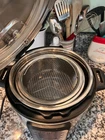 9-IN-1 FUNCTIONALITY: Pressure cook, slow cook, rice cooker, yogurt maker, steamer, sauté pan, yogurt maker, sterilizer and food warmer. IMPROVED STRESS-FREE VENTING: Intuitive and simple, our improved easy-release steam switch makes releasing steam easier than ever, and it automatically resets when the lid is closed. REALTIME FEEDBACK: The easy-to-read display includes a full cooking progress bar lets you know what stage of the cooking program you’ve reached. QUICK ONE-TOUCH COOKING: 15 customizable Smart Programs for pressure cooking ribs, soups, beans, rice, poultry, yogurt, desserts and more. VERSATILE INNER COOKING POT: Food-grade stainless-steel cooking pot with a tri-ply bottom offers more even cooking and an anti-spin design that secures the pot for perfect sautéing. COOK FAST OR SLOW: Pressure cook delicious one-pot meals up to 70% faster than traditional cooking methods or slow cook your favorite traditional recipes – just like grandma used to make. QUICK, EASY CLEAN UP: Finger-print resistant, stainless-steel sides and dishwasher-safe lid, inner pot, and accessories. With Instant Pot Official Mesh Steamer Basket Set, Stainless Steel, Dual-Purpose Steamer & Strainer, Easy-Lift Handle, Dishwasher Safe, Rust-Resistant, Essential Accessory for Healthy Cooking Enjoy Nutritious Foods: Steam a variety of vegetables, fish, and more with these versatile mesh steamer baskets. Designed to fit perfectly in your Instant Pot, they help you prepare delicious, healthy meals effortlessly. Protects Food: Raised feet on each basket keep your food elevated above boiling water, ensuring even steaming and preventing overcooking. Ideal for maintaining the texture and nutrients of your ingredients. Smart Lift Handle: Each basket features an easy-lift handle, allowing you to safely and easily remove food from your Instant Pot after cooking. No more struggling with hot, heavy pots! Dual-Purpose Design: Use these baskets not only as steamers but also as strainers. Perfect for rinsing vegetables, draining pasta, or even washing fruits. A multi-functional addition to your kitchen. Durable & Safe: Made from high-quality, rust-resistant stainless steel, these baskets are built to last. They are also dishwasher safe, making cleanup a breeze and ensuring they remain a staple in your kitchen.