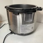 The Instant Pot Duo SV 60 Electric Pressure Cooker is a versatile kitchen appliance that combines the functions of a pressure cooker, slow cooker, rice cooker, and more. With a 6-quart capacity, it is suitable for cooking large quantities of food efficiently. The sleek silver design and stainless steel finish add a touch of elegance to any kitchen. This model includes essential components such as the pot, gasket, lid, and inner pot, making it a convenient and practical addition to your kitchen arsenal for hands-free cooking.