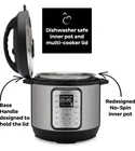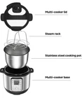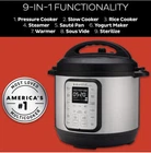 Enjoy the convenience of this 9-in-1 electric pressure cooker from Instant Pot. With a capacity of 6 quarts, this cooker is perfect for preparing meals for your family and friends. Its sleek black stainless steel design adds a touch of elegance to your kitchen. This multi-cooker features a safety valve, auto shut-off, and steam basket for added safety and ease of use. Its digital timer and keep warm setting allow for easy programming and timing of your favorite meals. The non-stick, dishwasher safe cooking pot is easy to clean and maintain. The locking lid and stay-cool handles ensure that the cooker stays cool to the touch. With adjustable settings and programs, this pressure cooker is perfect for any cooking needs.