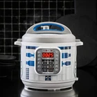 Instant Pot 112-0104-01 6Qt Star Wars Duo 6-Qt. Pressure Cooker, R2-D2, White with Blue R2D2 Instant Pot is a smart electric pressure cooker designed by Canadians aiming to be safe, convenient and dependable. It speeds up cooking by 2 6 times, uses up to 70% less energy and, above all, produces nutritious healthy food in a convenient and consistent fashion. Instant Pot Duo is a 7-in-1 programmable cooker, it replaces 7 kitchen appliances as it has the functions of a pressure cooker, slow cooker, rice cooker, steamer, sauté, yogurt maker & warmer. 14 built-in smart programs (Soup, Meat/Stew, Bean/Chili, Poultry, Sauté, Steam, Rice, Porridge, Multigrain, Slow Cook, Keep-Warm, Yogurt, Pasteurize & Jiu Niang) cook your favorite dishes with the press of a button. A 24-hour timer allows for delayed cooking. Automatic Keep Warm holds the temperature of the food until you serve it. Instant Pot generates almost no noise and leaks no steam. It traps all the aromas in the food without heating up the kitchen. The 3-ply bottom stainless steel inner pot is extremely durable and leaves no health concerns associated with non-stick coatings. The slim body design has lid holders for both left and right-handed users. The brushed stainless steel exterior is finger print resistant. Its elegant and durable design makes it easy to clean and pleasurable to use for years to come. Instant Pot Duo uses the latest 3rd generation technology with an embedded microprocessor, which monitors the pressure and temperature, keeps time and adjusts heating intensity. The cooking programs have been lab-tested hundreds of times for optimal effect. These greatly improve cooking results and maintain consistency. Instant Pot is carefully designed to eliminate many common errors that could cause harm or spoil food. It passed the stringent UL certification, giving you uncompromised safety and peace of mind, and protects you with 10 proven safety mechanisms and patented technologies. Features: Brand Instant Pot Capacity 6 Quarts Material Stainless steel Color R2-D2 Finish Type Titanium Product Dimensions 12.4"D x 12.4"W x 13.78"H Special Feature Programmable Wattage 1200 watts Control Method Touch Controller Type Push Button About this item Features 14 Smart Programs - Soup, Meat/Stew, Bean/Chili, Poultry, Sauté/Simmer, Rice, Multigrain, Porridge, Steam, Slow Cook, Keep Warm, Yogurt, Manual, and Pressure Cook. Now, your favorite dishes are as easy as pressing a button Healthy inner cooking pot made from 304 (18/8) stainless steel, no chemical coating, 3-ply bottom for even heat distribution, fully sealed environment traps the flavours, nutrients and aromas within the food. Slow-cooker setting has 3 temperature levels and can be programmed to cook between 30 minutes and 20 hours at each level Built with the latest 3rd generation technology, the microprocessor monitors pressure, temperature, keeps time, and adjusts heating intensity and duration to achieve your desired results every time UL and ULC certified with 10 safety mechanisms to provide you with added assurance, designed to eliminate many common errors Accessories include stainless steel steam rack with handles and condensation collector