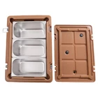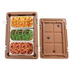 Insulated Food Pan Carrier Box Commercial Catering Chafing Dish Hot Cold 3 Pans SKU: FDKXEGL400-1 Description Would you like to have both good food and cold drinks while camping? Then this insulated food pan carrier box with a good thermostat effect for both hot and cold can meet your needs. It has three internal food pans with a capacity of 7.3Qt/1.85Gal, which can meet your family's dietary needs. And because of its environmentally friendly material, you can rest assured that the food will be served in it. Key Features Large Capacity: It has three pans, each with a capacity of up to 7.3Qt/1.85Gal, which can hold enough food at once, making it practical and convenient. Dual-use Insulated Box: This item can not only keep hot food warm but also keep cold food cool, making it the ideal insulated box for camping! Long-lasting Insulation: When the interior is filled with food, it keeps hot food hot for about eight hours and cold food cool for about forty-eight hours. So you can use it without worrying about food spoilage. Energy-saving: It is an insulated box that does not need to be plugged in. It can save you electricity loss at the same time the insulation effect is not inferior to the plug-in insulated box. Good Sealing: Each food pan has an individual lid and the box has four latches on the outside, all of which provide you with a strong seal that won't allow the food inside to spill out, even on bumpy roads. Removable Design: Its food pans and lid are removable design, which is convenient for you to hold food and clean. Good Material: Its shell is made of hard PE, the internal pans are made of environmentally friendly 201 stainless steel, and the insulation layer is made of PU with strong insulation capacity. It is not easy to damage while the environmental protection material can also let you rest assured to use it to hold food. Nice Appearance: Its brown shell with a metal latch gives a sense of simplicity and fashion, making it a good piece for camping. Customer Service: We aim to provide quality products and services. If you have any problems, please feel free to contact us. We will reply and solve the problem for you as soon as possible. Details Ventilation Cover: It has a small ventilation cover on the lid of the box, which is used to balance the air pressure inside and outside the insulated box to ensure that the internal food can reach its destination intact. Rounded Corners: It is rounded on every edge inside and outside, which can effectively avoid hurting your hands. Carrying Buckles: It has two carrying buckles on the side, so you can easily move the insulation box. There is a soft rubber cover on the handheld buckle, which feels good not to strangle your hands. Internal Recesses: The interior of the box has rounded recesses in the four corners to allow you to place or remove the food pans easily, which is a very thoughtful design. Application It is the mainstay of catering, delivery, and other mobile meals. It is widely used in canteens, hotels, outdoor parties, camping, etc. You can put all kinds of food in it, such as hot dishes, thick soup, cold drinks and ice cream. Specification Model: JB-30 Color: Brown Shell Material: PE Insulation Layer Material: PU Food Pan Material: 201 Stainless Steel Volume: 30L/31Qt/7.93Gal Capacity of Each Food Pan: 7L/7.3Qt/1.85Gal Size of Each Food Pan: 32.5*17.5*20cm/ 12.8*6.89*7.9in Applicable Temperature Range: -20~80℃ Insulation Duration (Box Filled State): About 8h Refrigerating Duration (Box Filled State): About 48h Product Size: 63*45*31cm/ 24.8*17.7*12.2in Package Size: 64*44*33cm/ 25.2*17.32*12.99lbs Net Weight: 13.5kg/ 29.76lbs Gross Weight: 14kg/ 30.86lbs Package Included 1* Insulated Food Pan Carrier Box 3* Food Pans Notes Please note that it is normal to have insulation time changes when the insulated box is affected by multiple factors such as the external environment. Because it is used in practice only as a medium to delay the loss of temperature. Opening the box several times will also change insulation time. And the more internal filling the longer the constant temperature time will be. Please allow the slight color difference caused by the shooting light and 1-3 cm error due to manual measurement, and make sure you do not mind before ordering. Payment Delivery details Terms of sales About us Contact us Payment We accept ebay payment 。 Fees such as import duties, taxes are not included in the item price or shipping costs. These charges are the buyer's responsibility. Delivery details Shipping: 2-9 working days to: USA Terms of sales We maintain high standards of excellence and strive for hundred percent customer satisfaction. Feedback is very important to us. We hope that you contact us immediately before you give neutral or negative feedback, so that we can address your concerns. It is impossible to address issues if we do not know about them! About us Your satis faction is our ultimate goal. We work hard to earn your trust and future business. Our certified technicians have tested each item before shipping. The unit comes with 1 year limited warranty on all manufacturing defects. a) If you receive a defective item, you may return it or ask for a discount. Please contact us within 14 days after you receive the package. b) What you returned must be intact and in its original packaging as re? u. Customer is responsible for shipping costs of the returned item. c) We will cover the cost of shipping back t with the shipping rate indicated in the registration page. We will send you a new unit or refund the full payment you paid. Thank you. Contact us Business Hour Business Hour: Monday To Friday: 8:30 AM to 5:00 PM (Beijing China time) Due to time zones, our reply to your questions may not be immediately. But within above working time, we will reply your email within 24 hours. If it's non-workdays, please kindly be patient and wait till Monday. Please contact us with ebay message. Please feel free to contact us if you have 