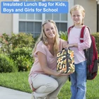 Insulated Lunch Bag, Leakproof Portable Lunch Box for Women Men Boys Girls, Large Capacity Cooler Bag with Handle and Bottle Pocket for Office School Camping Hiking Outdoor Beach Picnic High-quality Material: The lunch bag is made of 600D Oxford cloth, waterproof and leak-proof, wear-resistant, easy to clean and can be reused for a long time. The sturdy two-way zipper makes it easy for you to place and take out the lunch box. It is an idea gift for 7-18 years old children, boys. Keep Food Hot / Cold: Our insulated lunch bag has an insulating layer to keep your lunch hot/cold for hours, keep your food fresh. It can meet all your daily lunch, meal preparation or snack needs. Multi Compartments:Our lunch box is designed for maximum storage efficiency, 1 main zipped pocket, 1 internal mesh pocket, 1 side mesh pockets. provides you with plenty of space to store lunch boxes, fruits, snacks, drinks, etc. The sturdy double zipper design of the main pocket is very easy to open and close. Easy to Carry: the size of the lunch bag: 10.2" L x 4.3" W x 8.6" H, suitable for 6 cans or 1 person lunch. With a detachable buckle/handle, it can be tied to any backpack and suitcase, making it an ideal lunch bag for work, office, school and travel, suitable for men, women, boys and girls. Easy to Clean: Our lunch bags are waterproof and leak-proof, the inner lining can be easily wiped clean with a damp cloth. Cleaning is effortless.