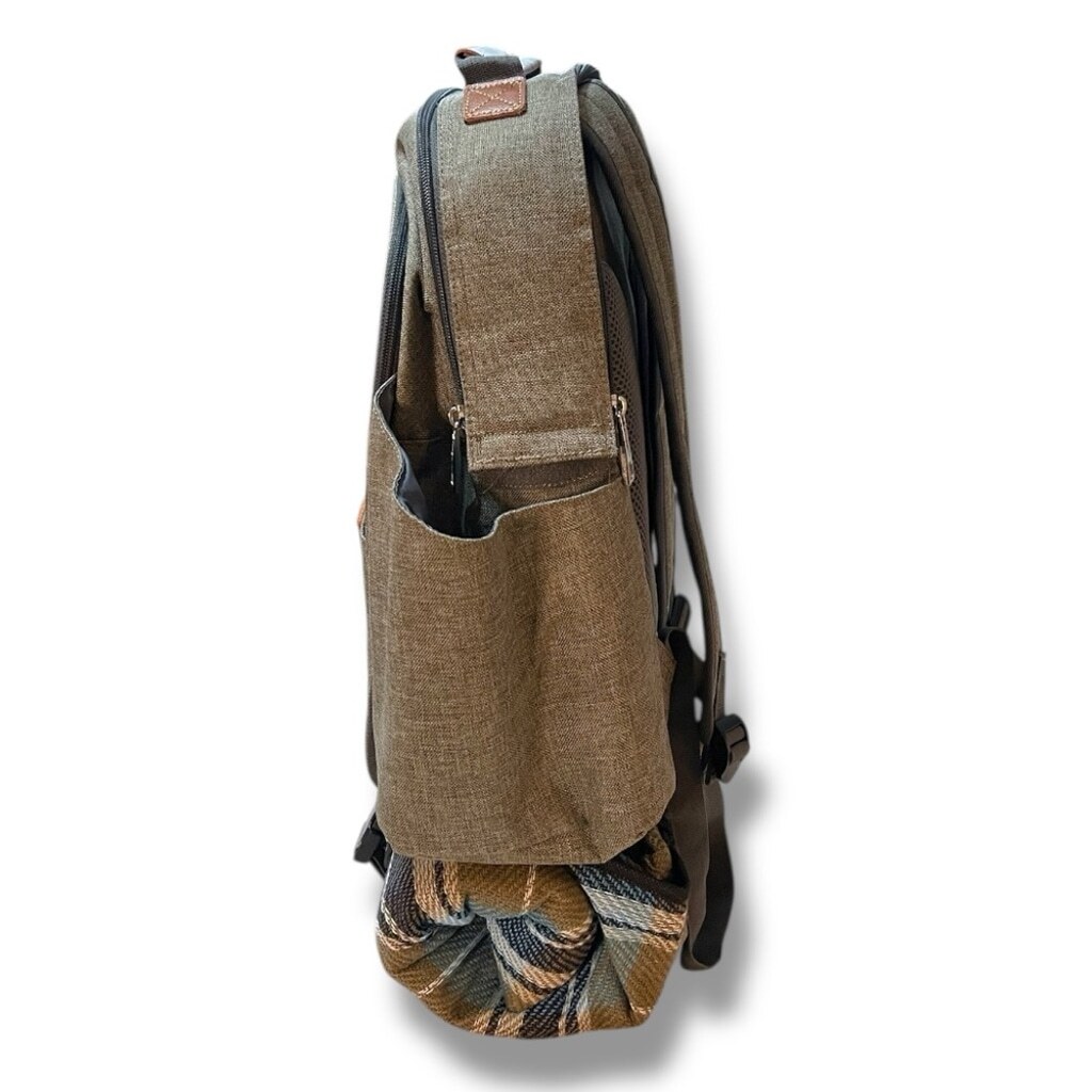 This elegant tan backpack is perfect for everyday use. It features a convenient blanket holder, making it ideal for picnics or outdoor adventures. The stylish design and practical features make it a must-have accessory. HappyPicnic Insulated Picnic Backpack for 2 Persons with Roomy Cooler Compartment, Bottle Holders and Large Waterproof Picnic Rug Brushed Khaki See images for dimensions. Condition: New but only comes with the Blanket, 2 plastic glasses, 2 plates and 2 napkins. ALL OFFERS WELCOME All orders ship in 1-3 business days Smoke-free and pet-free home!