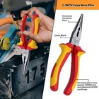 About this item PRODUCT STANDARD: Insulated Pliers are produced according to IEC60900 Standard and comply with relevant safety certifications. Before ex-works delivery, all tools must pass a 10000V AC test (10 times the rated voltage). DURABLE AND QUALITY: Insulated Pliers are made of die-forged Vanadium Stainless Steel; Titanium plated surface; Rust-resistant; High Strength; Anti-burn, High & Low Temperature Resistant; Firm Structure, No Loosening, Displacement or Shedding. Jaw hardness is HRC 58-63. INCLUDING: 1 x Lineman Pliers 10.5 x 5.2 x 4.4 inches, 1 x Long Needle Nose Pliers 10.5 x 5.2 x 4.4 inches, 1 x Diagonal Cutting Pliers 10.5 x 5.2 x 4.4 inches. SAFETY DESIGN: INSULATED TOOLS have a single-head structure, with exposed metal parts minimized. Flange on insulated handle, insulation integrity, no cracks or breakage, no joint gap between assembled insulated tools. Size: 10.5 x 5.2 x 4.4 inches.