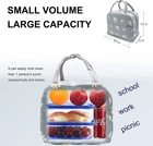 【HIGH QUALITY】The insulated lunch box bag is made of high quality high-density oxford cloth and food-grade waterproof aluminum foil to prevent tears and ensure maximum durability, can be leakproof, easy to clean and reusable 【JUST THE RIGHT SIZE】About 9 x 6 x 7.9 inches and weighing only 0.21 pounds, this insulated tote lunch bag is light in weight but big enough to easily hold all the food and dinnerware as you want (lunch box containers, food, fruit, snacks, canned drinks) 【KEEP YOU FOOD FRESH】The cooler lunchbox bag can keep food warm and fresh for a long time, keep your drinks cold, don't worry about food spoilage, it's like a good assistant for your life 【PERFECT DESIGN】Lunch bag with tote style and front pocket design, you can put in some small stuffs you need in life: keys, cards, tissues, cell phone etc; Cute Floral pattern style lunch bag, ideal gift for teen girls women or ladies 【MULTI-PURPOSE LUNCH BAG】You can use it as an insulated lunch bag, cooler bag to carry lunch containers and drinks, outdoor picnic bag, grocery bag or shopping bag; Reusable lunch bag, very lightweight with soft handle, can be used in any occasion, such as office, work, school, beach, outdoor picnic etc Product Description Keep Your Food Fresh The cooler lunchbox bag can keep food warm and fresh for a long time, keep your drinks cold, don't worry about food spoilage, Use an ice pack for better results. It can carry 1 lunch container, some snacks and fruit, even drinks. If you don't need to bring a lot of stuff to work, This lunch bag is prefect for you. it's like a good assistant for your life. Reusable Cute Tote Lunch Bag Unique Front Pocket Easy for you to store little things, such as cutlery, napkins, tissues, keys, mobile phones ect. Fashion Tote Bag Design Easy to carry, Handbag design, fashionable and durable, Can also be used as your daily handbag. A good style for Ladies or women Cute Daisy Pattern Cute lunch bag with high quality HD oxford cloth, Can be effectively waterproof It can meet your daily needs Insulated Lunch Bag & Easy to Clean Specifications: Insulated Lunch Bags Color: Grey with White Daisy Outer layer fabirc: Waterproof Item Weight: 0.21 lb Package size: 9 x8.27 x 0.79 inches Packing List: 1 Pcs White Daisy Insulated Lunch Bag Lunch bag Not for children under 12 yrs