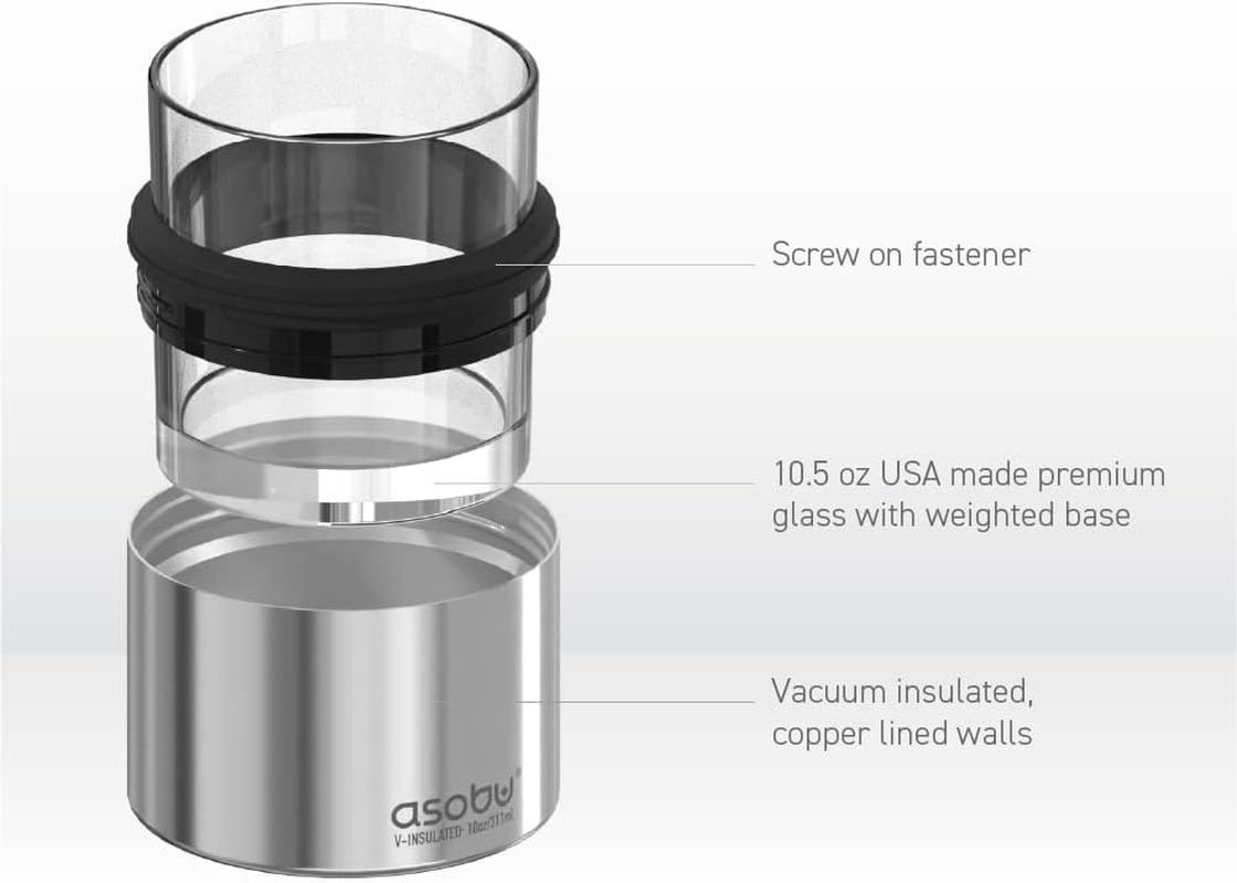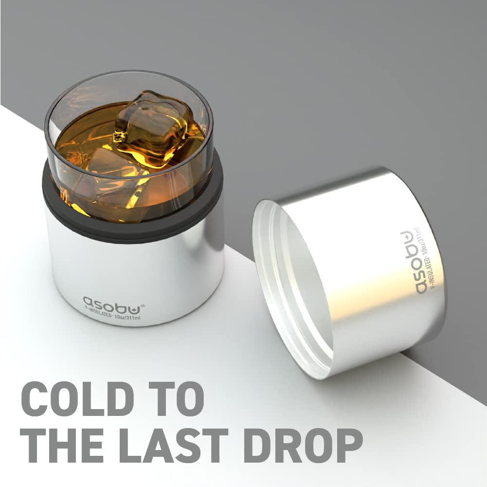 NO MORE WARM WHISKEY - Keep your hands warm and your whiskey cold with our insulated stainless sleeve for your whiskey glass STAINLESS STEEL INSULATED - Our sleeve is designed to keep your whiskey chilled until the last drop without the taste of a stainless steel cup SECURE RUBBER BAND - The band on top keeps your whiskey glass secure in the insulating sleeve DOUBLE WALLED - Chill your whiskey not your hands with the double walls that protect your whiskey INDOOR OR OUTDOOR - Great for use indoors and durable enough for backyard, poolside or BBQ parties Product Description Double Walled Insulation Chill your whiskey not your hands with the double walls that protects your whiskey Premium Glass Includes a quality old fashion whiskey sized glass Condensation Free Sleeve Keep your hands dry and your whiskey cold with the condensation free insulated stainless sleeve. Removable Sleeve The sleeve easily removes from the glass for easy cleaning and storing No more watered down, melted ice whiskey Indoors or outdoors your whiskey will stay cold and pure! Preserve the taste of your beverage Great for use with any cocktail - Enjoy the pure taste of you cocktail in a stainless steel insulated cup! Asobu Bar Collection Add to Cart Add to Cart Customer Reviews 4.7 out of 5 stars 2,505 3.4 out of 5 stars 20 4.7 out of 5 stars 5,193 4.3 out of 5 stars 86 4.1 out of 5 stars 54 Price $21.90 $ 21 . 90 — $29.99 $ 29 . 99 — — Double Walled Vacuum Insulated ✔ ✔ ✔ ✔ ✔ Capacity 10.5 Ounces 17 Ounce N/A 16 Ounces 15 Ounces No flavor transfer glass ✔ ✔ ✔ ✔ ✔ No outer condensation ✔ ✔ ✔ ✔ ✔ Glass Included ✔ ✘ ✘ ✔ ✔
