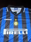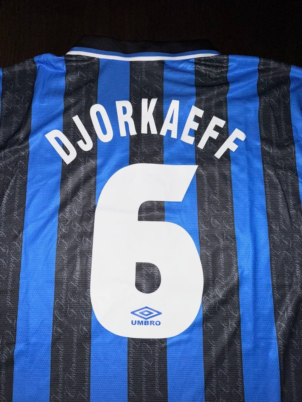 Unique match shirt for Italian club Inter featuring Armenian star Youri Djorkaeff. Size XL with the following measurements: Waist: 54 cm Chest: 52 cm Length: 73 cm Shoulder width: 56 cm Sleeve length: 22 cm