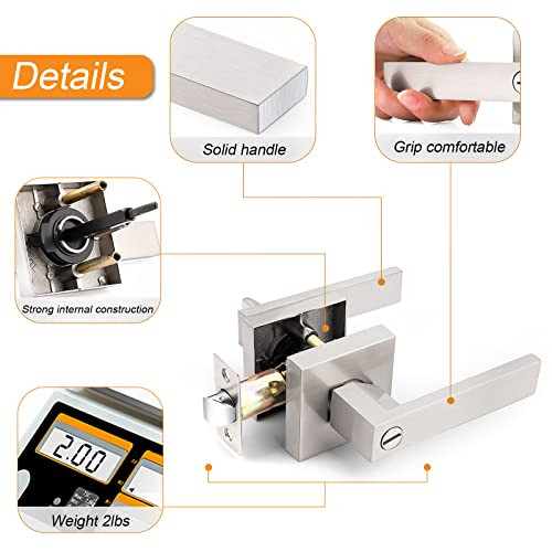 Return Policy Fast Delivery Trusted seller Interior Brushed Nickel Door Handle, Heavy Duty, Flat Square Privacy Door Handles, Keyless Door Levers Lockset for Bedroom and Bathroom (8 Pack, Modern) Product Description 【Privacy】:8 Lock Per Package(for 8 door). Privacy door lever with elegant stain nickel finish. Confirm with ANSI Grade 3, Exceeds 200,000 cycles (8 kind of plates for standard doors) 【Function】: Privacy function, without keys. When locked from inside, the lock could be opened from outside with aemgency tool, such as a coin. Best use for bathroom or bedroom door 【Steel Adjustable Latch】: It has adjustable universal latch - 2-3/8" or 2-3/4", Fits doors 1-1/4 inch to 1-3/4 inch 【Easy Installation 】: Easy to install with all accessories included. The easy installation makes for a one-person project. It fits both right and left handled doors 【Dimensions】 : Lever Length: 4.84"(123mm) , Rosette Diameter: 2.56"(65mm). Note : The square plate of the latch is non-removable Shipping Returns Payment Shipping Shipping is FREE to all addresses other than APO/PO boxes in the lower 48 states. All our stock ships from US-based warehouses. Shipped via USPS or UPS (depending on location and package weight) Unless stated otherwise, all orders will ship within 24-72 hours of your payment being processed. Check our feedback to see the great reviews of FAST shipping we offer. Returns Seller does not accept returns Payment We currently accept payment via eBay managed payments only. Once payment is cleared, we will dispatch your shipment within 1-3 business days. Please refer to the "Shipping" tab for more information regarding shipping speed to your destination.