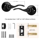 【Privacy】2 pack keyless privacy door lever for two doors. It could be locked/unlocked with the thumb-turn from inside or a emergency tool like a coin from outside. The privacy door handle is suitable for bathroom, bedroom or guest room where privacy is needed. 【Elegant Design】The black door lever is exquisitely designed in a modern style. The wave shape provides a more comfortable gripping experience. High-quality zinc alloy makes the lever wear-resistant, corrosion-resistant, and durable. Confirmed with ANSI Grade 3, exceeds 250,000 cycles. 【Reversible Levers】The keyless door lever fits both right and left handed doors. The interior lever can be removed from the rosette and switched with the exterior lever. 【Dimensions】Lever Length: 4.7" (120mm); Rosette Diameter: 2.56" (65mm); Adjustable Backset: 2-3/8 inch or 2-3/4 inch (60mm or 70mm); Fits doors thickness: 1-3/8 inch to 1-3/4 inch (35mm to 45mm). The square plate of the latch is not removable. 【Easy Installation】The door handle can be easily installed in minutes with a screwdriver. The package includes all necessary accessories and the instruction can be as a template.
