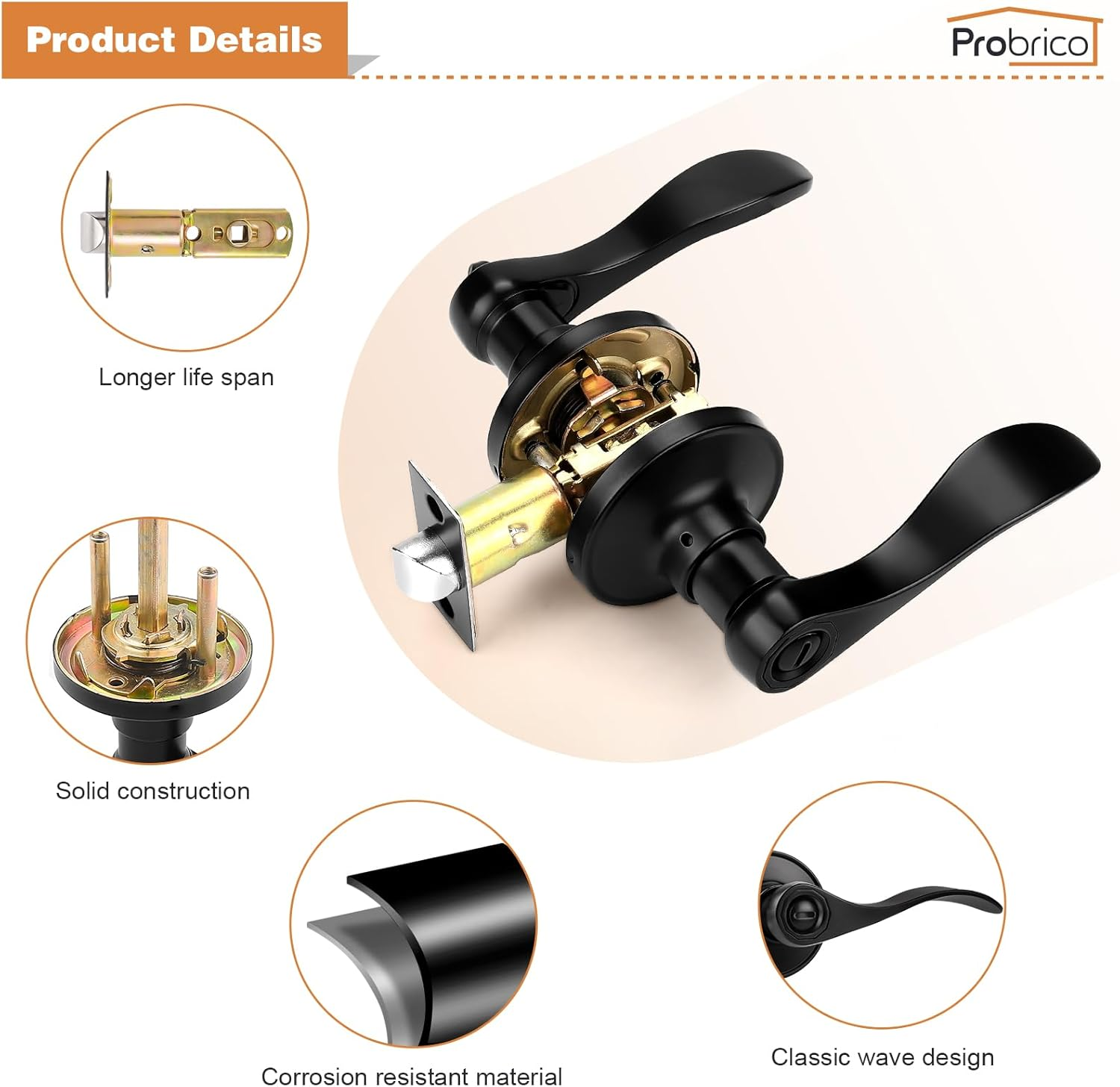 Menu Other Items Feedbacks About Us Contact Us Add To Favorites Interior Door Handle Privacy Door Levers Door Handle Matte Black for Bathroom and Bedroom, Wave Style Interior Door Lever Black, Reversible Door Handle Lock without Keys, 2 Pack 【Privacy】2 pack keyless privacy door lever for two doors. It could be locked/unlocked with the thumb-turn from inside or a emergency tool like a coin from outside. The privacy door handle is suitable for bathroom, bedroom or guest room where privacy is needed. 【Elegant Design】The black door lever is exquisitely designed in a modern style. The wave shape provides a more comfortable gripping experience. High-quality zinc alloy makes the lever wear-resistant, corrosion-resistant, and durable. Confirmed with ANSI Grade 3, exceeds 250,000 cycles. 【Reversible Levers】The keyless door lever fits both right and left handed doors. The interior lever can be removed from the rosette and switched with the exterior lever. 【Dimensions】Lever Length: 4.7" (120mm); Rosette Diameter: 2.56" (65mm); Adjustable Backset: 2-3/8 inch or 2-3/4 inch (60mm or 70mm); Fits doors thickness: 1-3/8 inch to 1-3/4 inch (35mm to 45mm). The square plate of the latch is not removable. 【Easy Installation】The door handle can be easily installed in minutes with a screwdriver. The package includes all necessary accessories and the instruction can be as a template. Product Description Probrico Black Door Lever Take Probrico, take quality life. 1 Bedroom 2 Bathroom 3 Meeting Room Modern | Exquisite | Durable Probrico is a professional household goods retailer. We are committed to providing you with high-quality products and after-sales services. This nickel passage door lever is one of the best-selling products in our store. The exquisite design and good quality will meet your needs and surprise you! More Products for Your Choice Add to Cart Add to Cart Add to Cart Add to Cart Add to Cart Add to Cart Customer Reviews 4.5 out of 5 stars 6,272 4.5 out of 5 stars 6,272 4.5 out of 5 stars 6,272 4.6 out of 5 stars 2,936 4.5 out of 5 stars 762 4.7 out of 5 stars 656 Price $74.99 $ 74 . 99 $125.83 $ 125 . 83 $135.51 $ 135 . 51 $70.58 $ 70 . 58 $21.99 $ 21 . 99 $23.09 $ 23 . 09 Function Privacy Privacy Privacy Passage Keyed Entry Dummy Color Black Polished Chrome Gold Black Black Black Pack 1, 2, 3, 4, 5, 6, 8, 10 1, 2, 3, 4, 5, 6, 8, 10 1, 2, 3, 4, 5, 6, 8, 10 1, 2, 3, 4, 5, 6, 8, 10 1, 2, 3, 4, 5, 6 1, 2, 3, 4, 5, 6, 8, 10 Reversible ✔ ✔ ✔ ✔ ✔ ✘ Keyless ✔ ✔ ✔ ✔ ✘ ✔ Item Specification Item model number ebbc4271-b984-4bee-b060-b8bd7291b3a2 Style Modern Handle Type Lever Number of Items 1 Theme Hardware Batteries Included? No Unit Count 2.0 Count Batteries Required? No Finish Matte Special Feature Easy to Install Material Zinc Item Depth 2.315 inches or 2.756 inches Package Type FFP Shape Round Finish Type Matte Metal Type Zinc Alloy Specific Uses For Product Door Item Package Quantity 2 Item Weight 3.58 pounds Size 2 Pack Lock Type Thumb Turn Lock Special Features Easy to Install Exterior Finish Black Color Black Hand Orientation Ambidextrous Handle Material Zinc Included Components Screw, Knob Product Dimensions 1"L x 1"W Number Of Pieces 2 Dimensions Shipping Returns Additional Info Product Dimensions: 1.0 "w x 1.0 "w. Weight: 3.58 lb Fast shipping is very important for us. Our standard shipping service is FREE. Your order will be shipped within 1-3 business days upon full payment received. Most items are delivered within 3-5 business days, however, please allow 3-10 business days. We are shipping only to USA. We only ship to the confirmed Paypal address. We reserve the right to cancel any order for any reason at any time. We are not responsible for undeliverable addresses. We offer a 30 day return policy from checkout winning date. Your satisfaction is guaranteed! If for any reason you are unhappy with your item, just return it within 30 days for a full refund, minus shipping cost. Please contact us prior to initiating a return so that we can issue you a refund authorization. Items defective upon receipt must be packaged in their retail packaging as if new and returned with a detailed description of the problem. Return shipping fees are not refundable. We reserve the right to decline any returns if the above guidelines are not followed. All of our items, unless otherwise stated, will only run on 120 volts. Please check to make sure your country complies with these specifications. If you have a problem or question regarding your transaction please contact us before leaving any type of feedback. We will work with you to resolve any problem you may have.