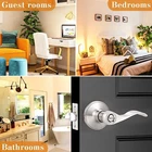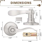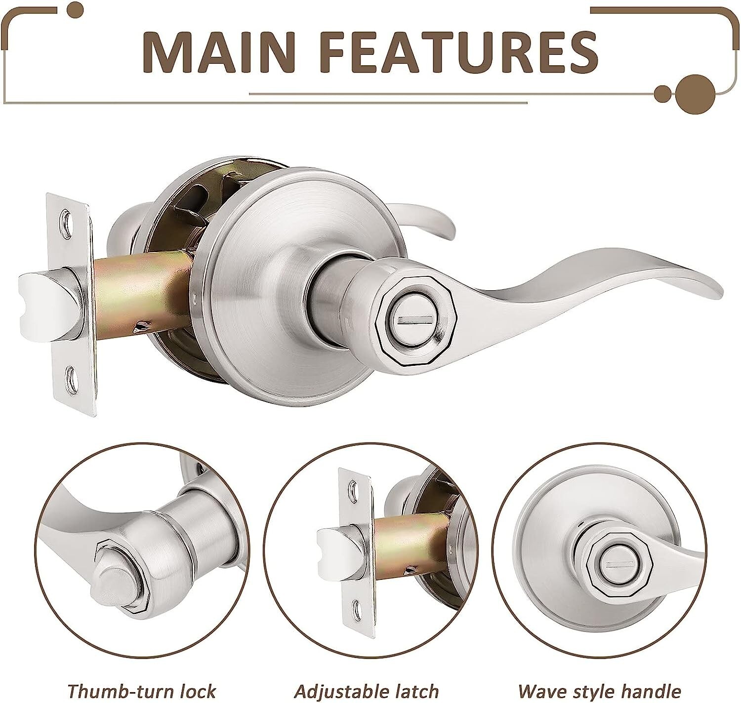 Probrico Privacy Door Lever Wave Style Keyless Lock Interior Door Knob for Bed/Bath Pack of 5 Material:Stainless Steel; Satin Nickel Finish; Modern Wave Style Privacy Levers 6 Pack per package(for 6 doors) : privacy door levers with modern nickel finish for bathroom or bedroom door. Confirm with ANSI Grade 3, Exceeds 200,000 cycles. Privacy Function(without keys) : The latch bolt can be locked by thumb turn button on the inside lever. An emergency release tool can unlock the door from the outside Steel Adjustable Latch : It has adjustable universal latch - 2-3/8" or 2-3/4", Fits doors 1-1/4 inch to 1-3/4 inch Easy Installation : Easy to install with all accessories included. The easy installation makes for a one-person project. It fits both right and left handled doors. Dimensions : Lever Length: 4.7"(120mm) , Rosette Diameter: 2.56"(65mm). Note : The square plate of the latch is unremovable