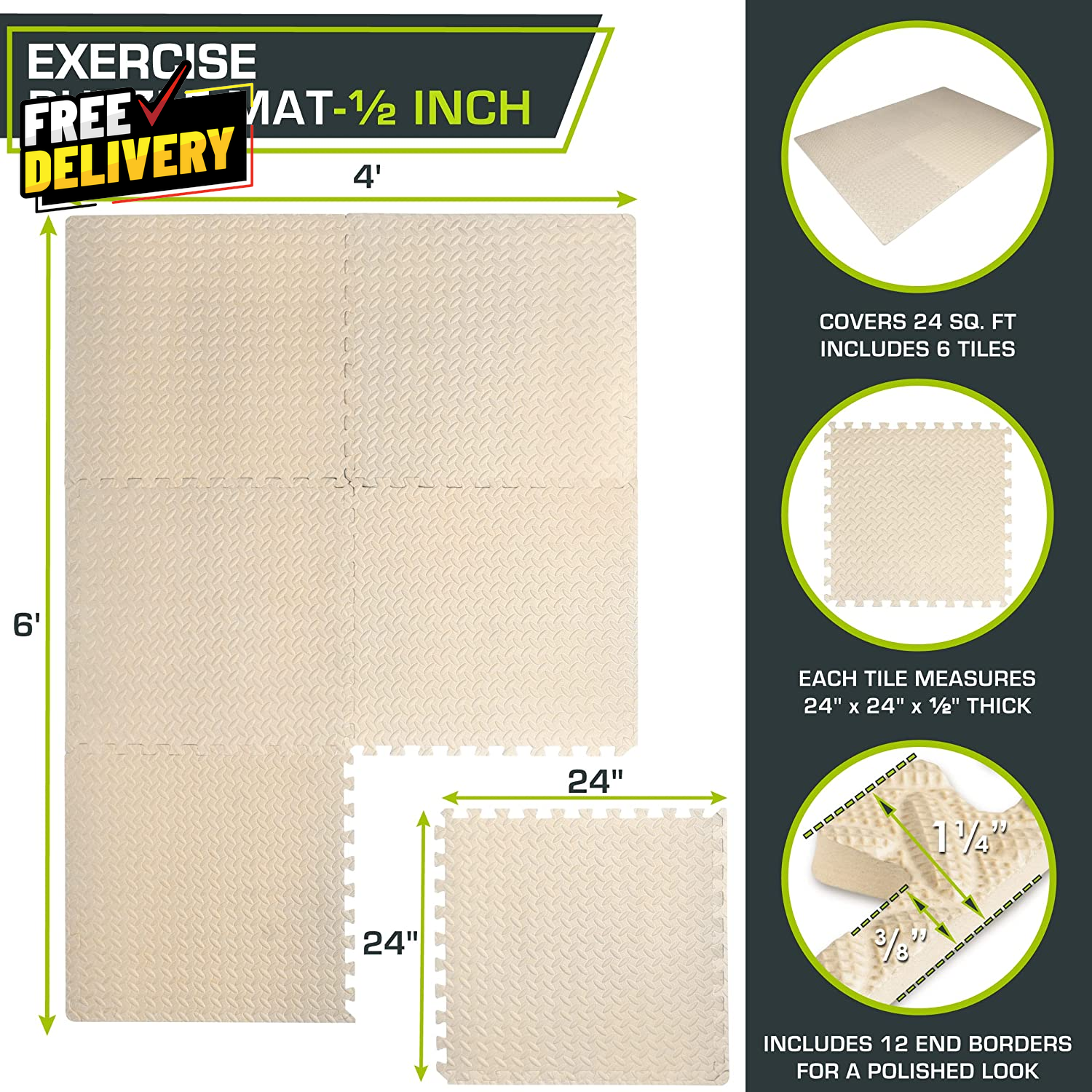 Store New Arrivals Add to Favorite View Feedback Contact Puzzle Exercise Mat ½ In EVA Interlocking Foam Floor Tiles for Home Gym Mat Description Protective Foam Floor Tiles - Durable, non-skid textured squares and tiles that cover and protect your floor or even carpet while creating a comfortable gym flooring for home gym with exercise accessories or as a play mat for children. Versatile – The water-resistant, noise-reducing design is easy-to-clean, great for indoor purposes like in garages as a protector, gyms, a home fitness room, or even children’s play areas as a play mat. Easy Assembly – Lightweight interlocking foam tiles connect quickly and easily, and can be disassembled just as simply for quick storage. Covers 24 Sq Ft - Each tile measures 24 in x 24 in x ½ in - thick from the highest point of the texture; Includes 6 tiles with end borders for a polished look. Care: Apply warm water and dish soap with a soft cloth or towel and air dry. High Quality Foam - High-density EVA foam mat provides excellent support and cushion; Contains NO toxic phthalates. Excellent alternative to rubber gym mats.ts are over, stress-free! Number of Items 6 Pattern Mat Style 1/2" Thick 24 Square Feet Package Weight 2.26 Kilograms Suggested Users Unisex-Adult Model Name Exercise Puzzle Mats 0.5-in Item Package Dimensions L x W x H 25.31 x 25.04 x 3.15 inches Item Thickness 0.5 Inches Included Components Puzzle Item Weight 2 Kilograms Special Feature Cushioned Part Number ps-2289-pzzl-cream Item Dimensions LxWxH 24 x 24 x 0.5 inches Color Beige - 1/2 Inch - 24 Sq Ft - 6 Tiles Global Trade Identification Number 00810244025079 Material Foam Shape Square Material Type Free Phthalate Free Product Dimensions 24"L x 24"W x 0.5"Th Product Care Instructions Air Dry Size 1/2 inch - 24 Sq Ft - 6 Tiles ABOUT US Prior to making any purchase from our store, we’d like to introduce ourselves. My name is Shahzad Yaqub , and I am the proud owner of Epic Emporium Deals , located in the great state of Illinois, USA. I have been an active and trusted eBay seller since Jan 14, 2025 . At Epic Emporium Deals , we are committed to offering competitive prices and top-quality products . Our extensive collection features a wide variety of items, including media such as books, movies, music, and games , as well as electronics, toys, sporting apparel, clothing, tools , and general home and garden essentials —and much more! If you have any questions or require assistance, please don’t hesitate to reach out. Your satisfaction is our priority, and we look forward to providing you with an exceptional shopping experience. SHIPPING We are always working hard to ensure your package arrives as soon as possible. Please understand that some factors like weather, high postal traffic, and the performance of shipping companies are outside of our control. We offer free shipping to the lower 48 states and ship within 2 business days of payment, usually sooner. We do not accept P.O. Boxes. Please provide a physical address. For shipping outside of the continental USA, we only use eBay's Global Shipping Program. The item is shipped to IL and then sent to the rest of the world. International customers are responsible for all duties and taxes. Continue to 'check out' to calculate costs for shipping the item to your country. Messages regarding eBay's Global Shipping Program MUST be directed at eBay EXCLUSIVELY. RETURNS We do not accept returns under normal circumstances. However, we will gladly consider a return if the item is received broken or if the wrong size is sent to you. In all other cases, returns will not be accepted. CUSTOMER SATISFACTION We try our very best to make sure every customer is completely satisfied. If there's a problem, message us! We're happy to help.