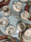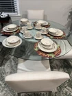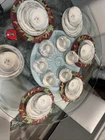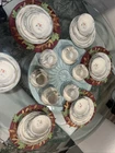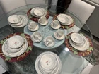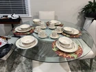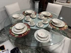 This set of 6 place seating of International Marmalade plates is a must-have for any collector. The plates feature a beautiful multicolor fruit and goose ribbon design on a round stoneware material. The set includes 30 plates, including dessert, salad, cereal bowl, dinner, and coffee cups, all of which are oven, microwave, and dishwasher safe. No chips , no cracks , new been in the display cabinet only The plates have a glossy finish and are printed with the brand's backstamp. They are original late 20th-century pieces from Japan, perfect for all occasions, and will make a great addition to your pottery and glass collection. Look at the pictures and ask questions before making your purchase