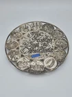 This International Silver Company trivet features a 12 Days of Christmas design in silverplate metal, perfect for holiday decor or serving. Made in 1995, this collectible piece adds a festive touch to any Christmas celebration. The trivet is a functional and decorative item that commemorates the classic holiday song in a timeless silver finish by the international Silver Co.